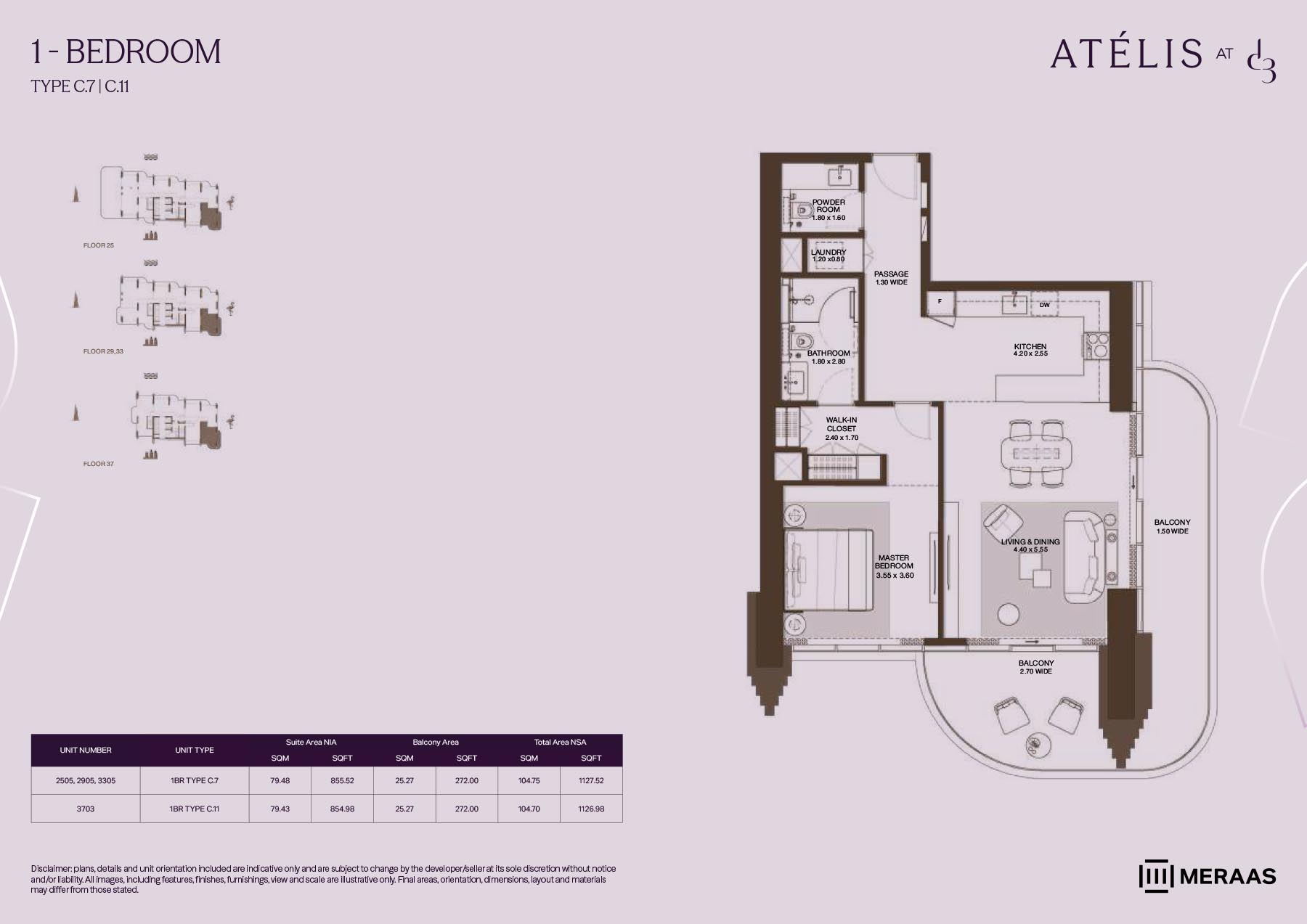 | Floor 25-37 | 1 Bedroom | Type C7-C11 (Unit 2505-3703) | 1127.52 Sq Ft | Apartments |