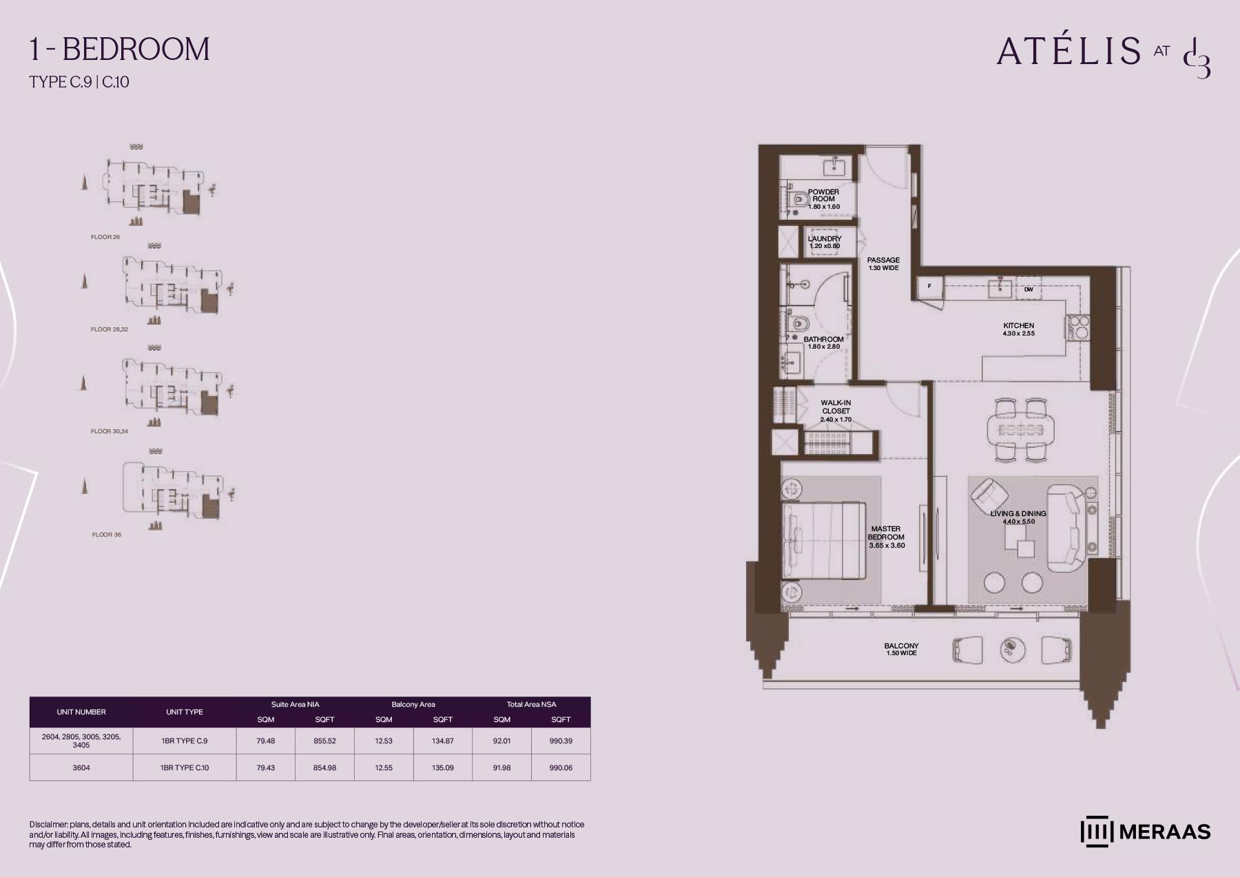 | Floor 26-36 | 1 Bedroom | Type C9-C10 (Unit 2604-3604) | 990.39 Sq Ft | Apartments |