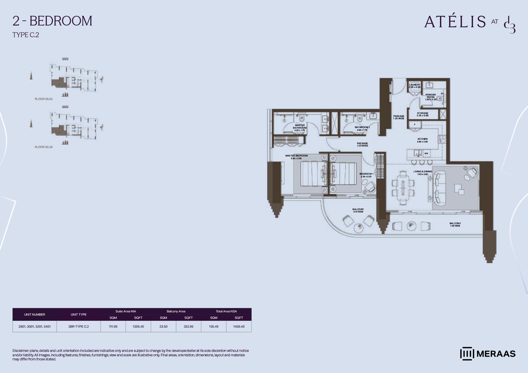 | Floor 28-34 | 2 Bedrooms | Type C2 (Unit 2801-3401) | 1458.40 Sq Ft | Apartments |
