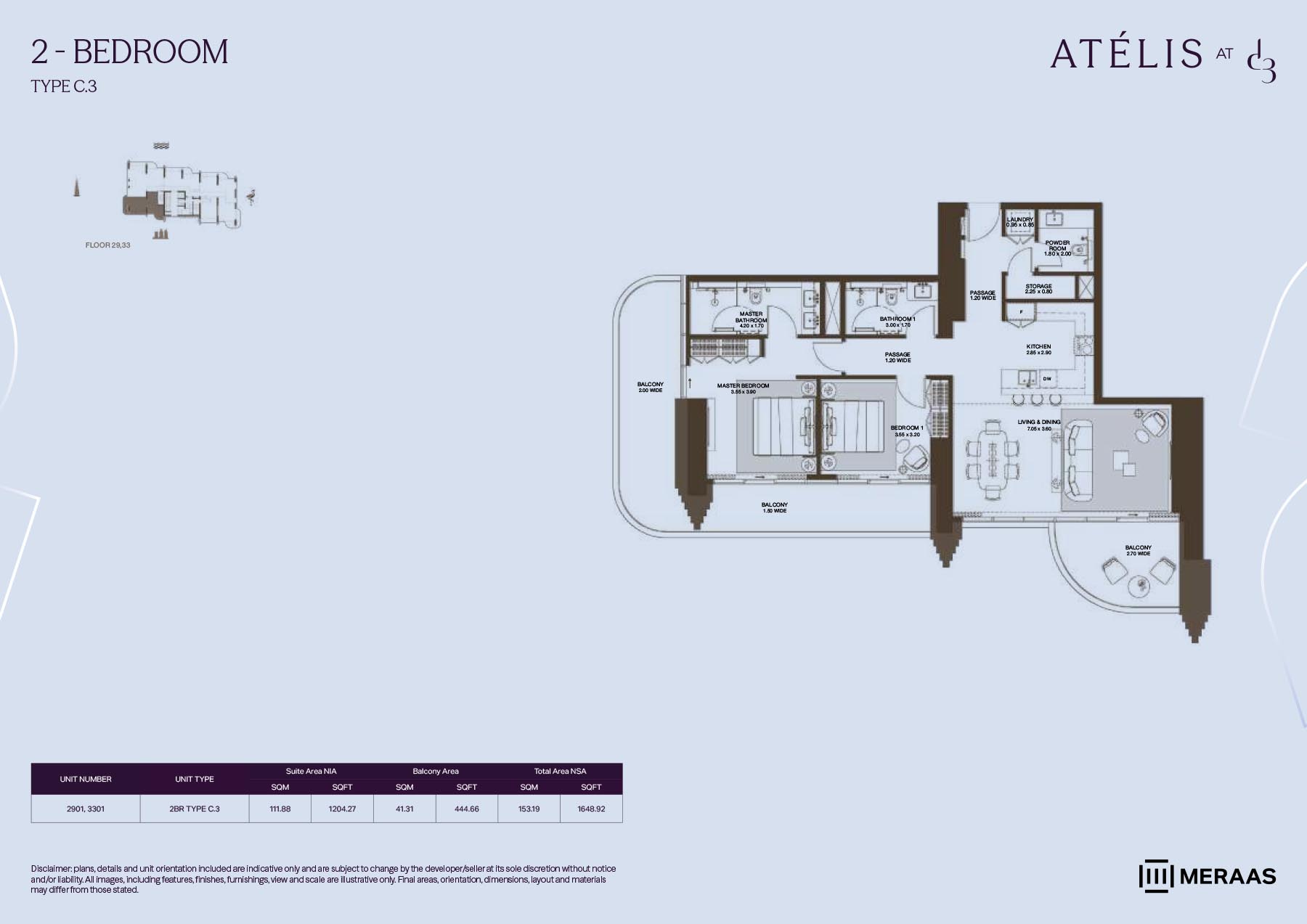 | Floor 29 & 33 | 2 Bedrooms | Type C3 (Unit 2901 & 3301) | 1648.92 Sq Ft | Apartments |