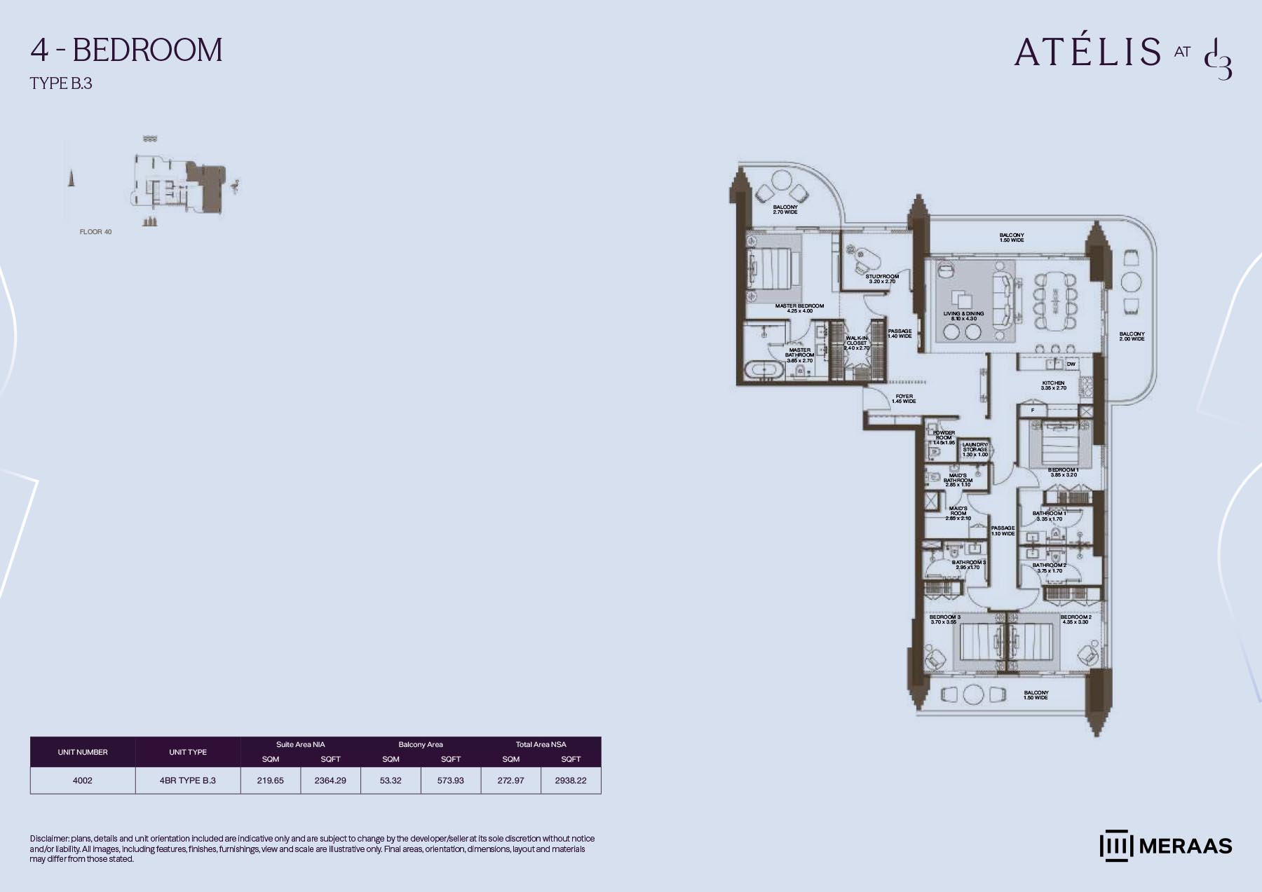 | Floor 40 | 4 Bedrooms + Study + Maid | Type B3 (Unit 4002) | 2938.22 Sq Ft | Apartments |