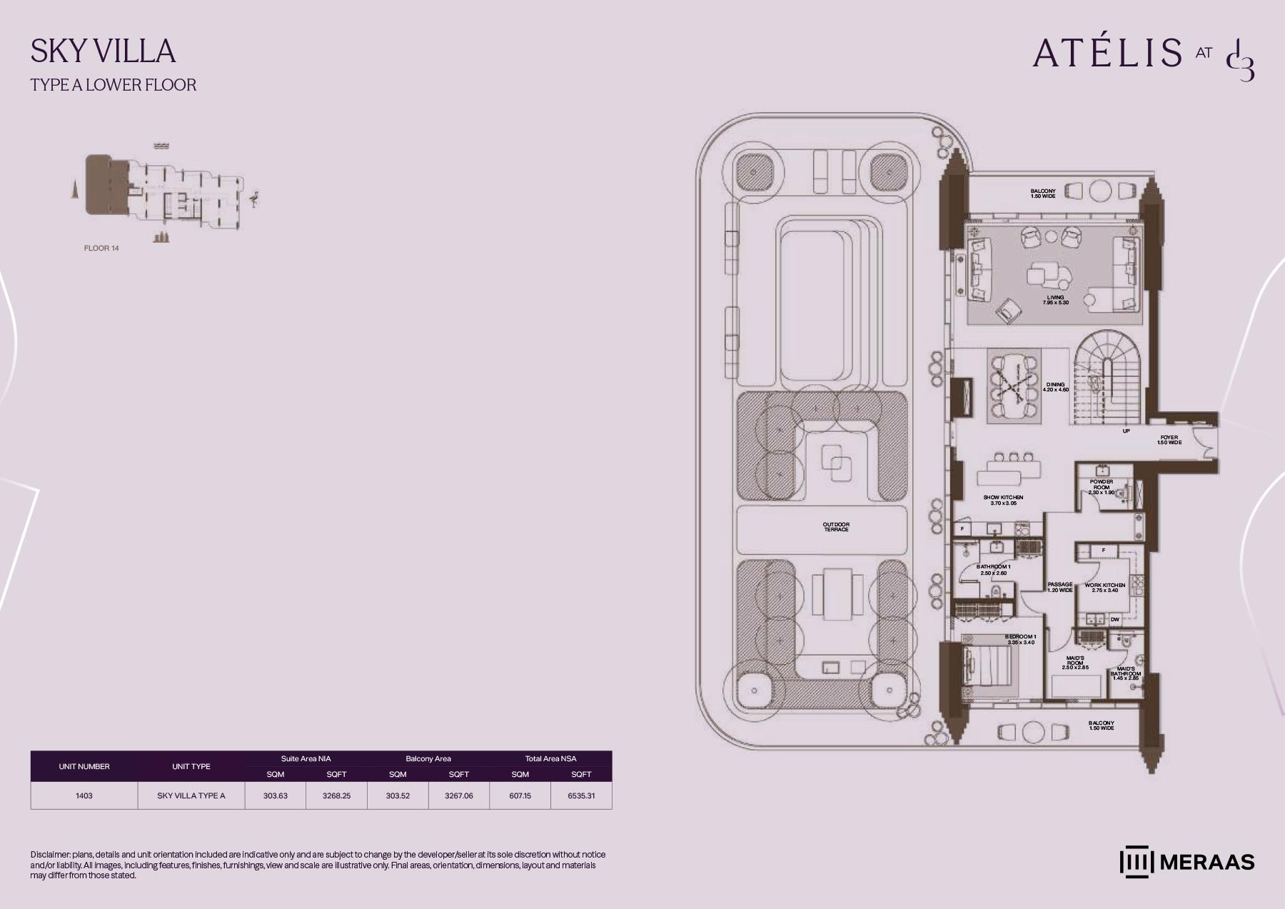 | Floor 14 & 15 | 4 Bedrooms + Maid | Type A Lower Floor (Unit-1403) | 6535.31 Sq Ft | Sky Villa |