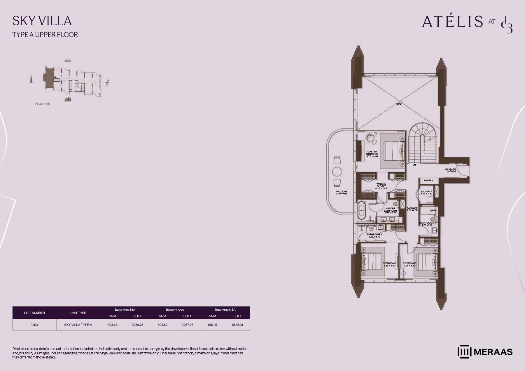 | Floor 14 & 15 | 4 Bedrooms + Maid | Type A Upper Floor (Unit-1403) | 6535.31 Sq Ft | Sky Villa |