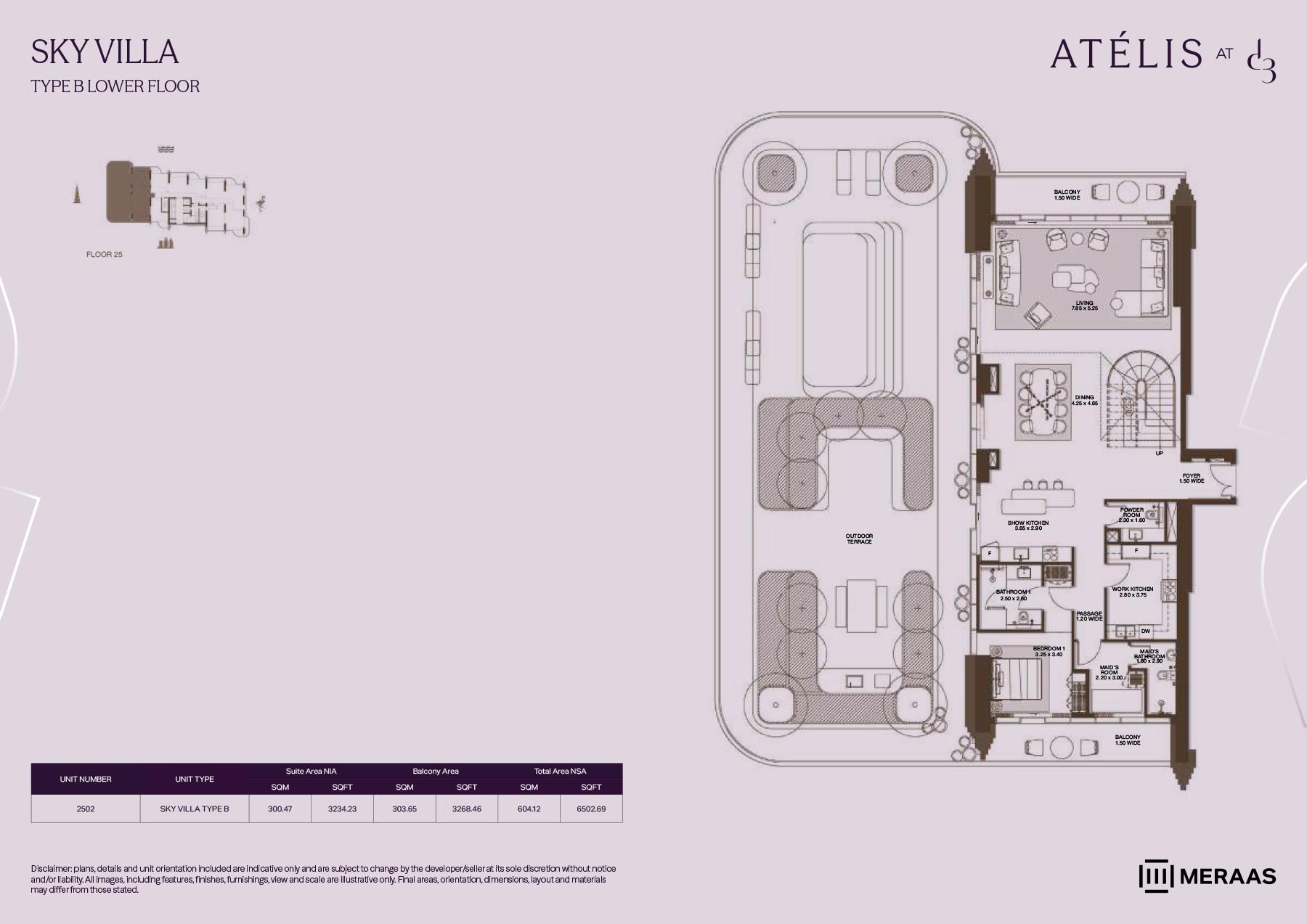 | Floor 25 & 26 | 4 Bedrooms + Maid | Type B Lower Floor (Unit-2502) | 6502.69 Sq Ft | Sky Villa |