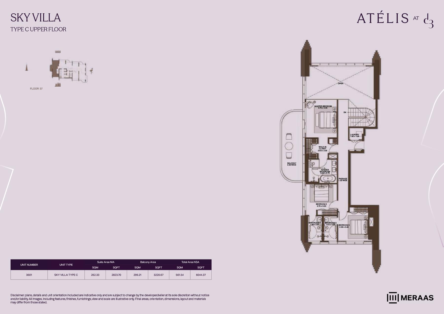 | Floor 36 & 37 | 4 Bedrooms + Maid | Type C Upper Floor (Unit-3601) | 6044.37 Sq Ft | Sky Villa |