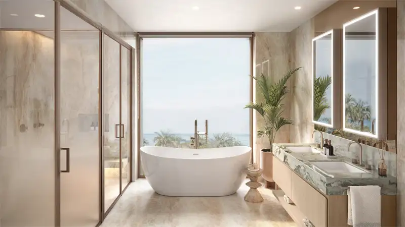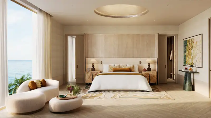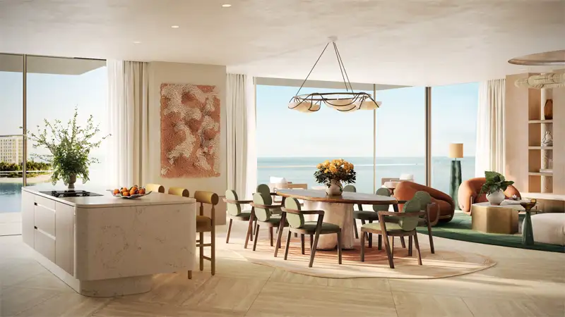 - A luxurious lifestyle with exceptional amenities, including an infinity pool, wellness spa, private beach access, modern conveniences, and peaceful spaces like a lounge and library for ultimate relaxation.