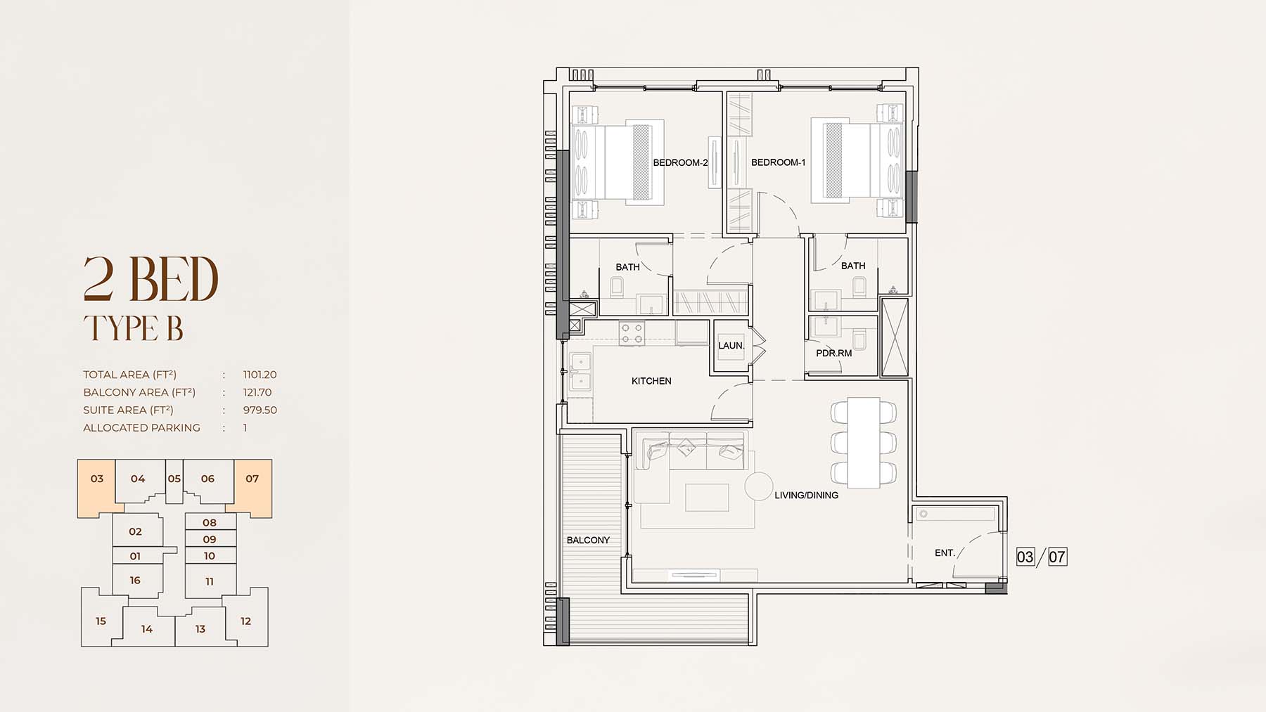 The Myra Residences at Dubai South city is designed with customized floor plans in different sizes of Studio, 1, 2 and 3-bedroom apartments. The exclusive design and contemporary architecture of this high-rise property developed to cater to various preferences of homebuyers. Each unit of this property is having larger sized bedrooms, open living area and dining area and spacious balconies offering views of the community. The floor to ceiling windows allow abundant natural light and ventilation in each corner of residences. The builder has used very premium interior and high-quality finishes and fitted with automated appliances and smart systems.