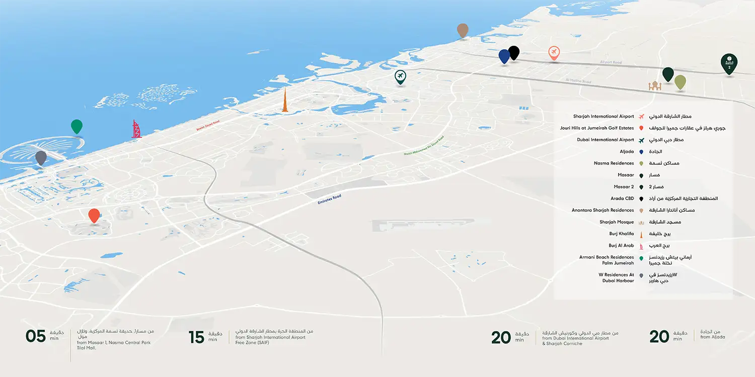 - Sharjah International Airport / SAIF Free Zone – 15 Minutes