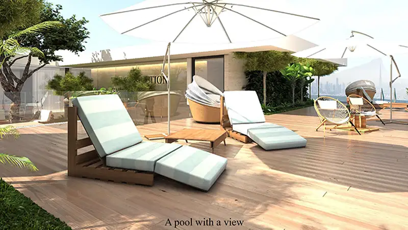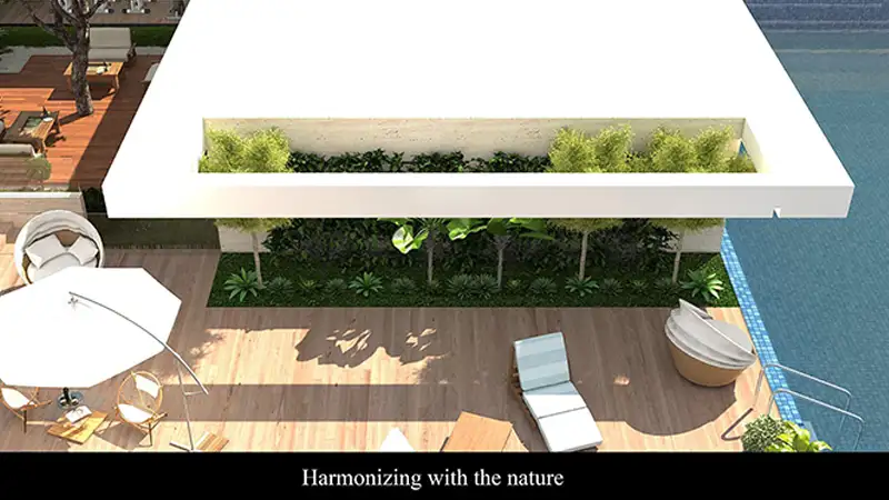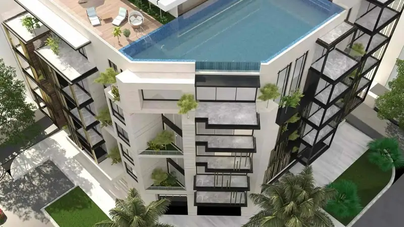 - In this development, contemporary architectural features are skilfully interwoven with vibrant greenery, creating a visually striking contrast between man-made design and the natural world. The carefully curated landscaping around the building not only enhances its beauty but also fosters a sense of tranquillity, offering a harmonious and balanced living environment.