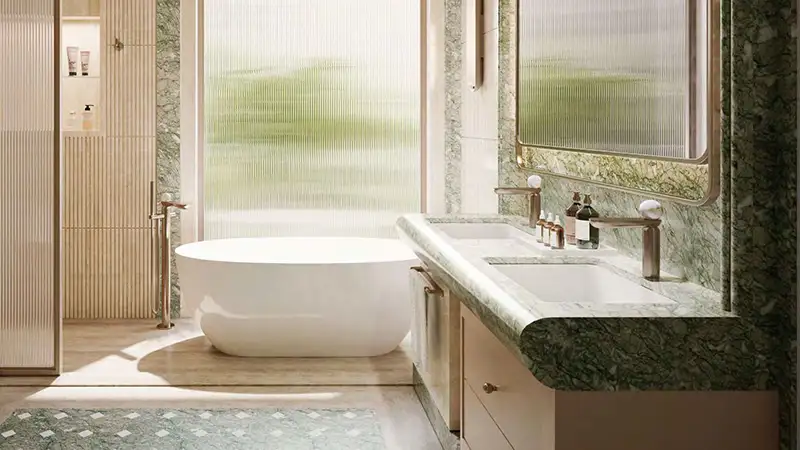 Nasim Al Bahr Residences by Abu Dhabi National Hotels is a collection of apartments, penthouses, townhouses, and villas at Al Marjan Island of Ras Al Khaimah. It is a new coastal community situated near to Arabian Gulf and developed branded residences under The Luxury Collection (Marriott), which itself is a symbol of luxury and style. The project includes 1, 2 and 3-bedroom apartments, 4 and 5-bedroom penthouses, 3-bedroom townhouses, 3-bedroom Beach Villas, 2 and 3-bedroom Podium Villas, and one Presidential Villa. This residential community is designed to be a part of resort bay offering direct access to the beautiful and clean beaches, and the hotel also located within walking distance from there.