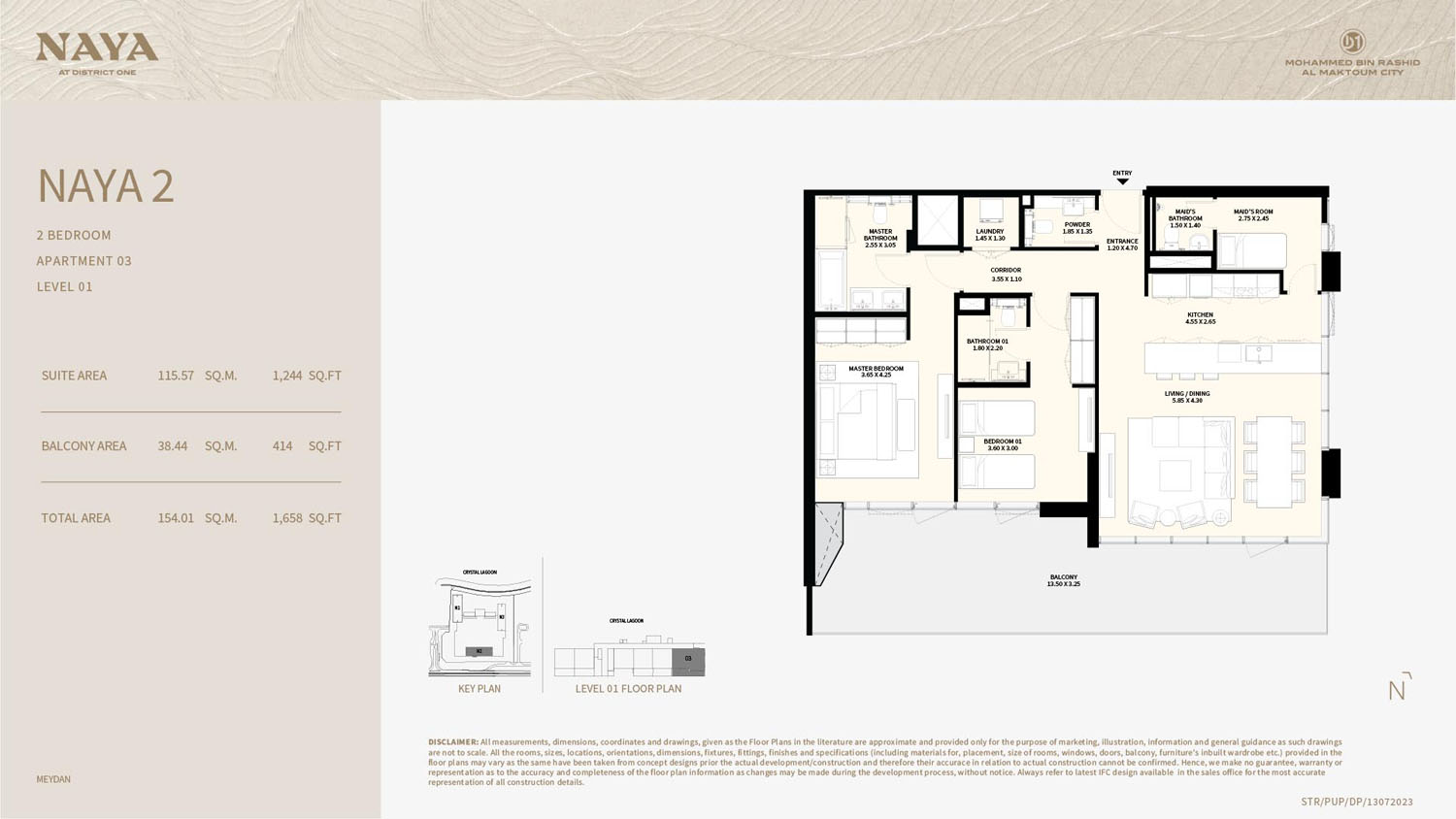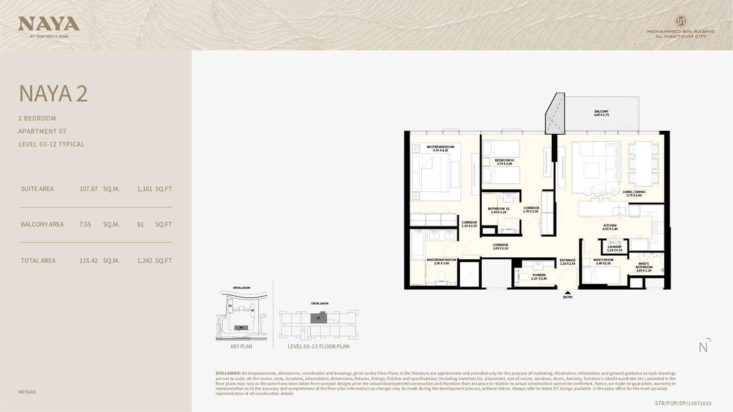 Naya 2 at District One (D1) is the 2nd phase of residential development by Nakheel with collection of 1 and 2-bedroom waterfront development in MBR City, Dubai. The layouts are spacious complemented with fine interiors designed with modern finishes. All things are designed in a way that it feels warm welcome within the calm and relaxed surroundings. The development offers carefully designed apartments feature a spacious and large layout that increases the sense of space and light within the interiors, creating a bright and airy atmosphere. The 1-bedroom apartment includes a fully-equipped kitchen, a private balcony that offers outdoor relaxation, and maximum storage space helps to organize things in proper ways. The two-bedroom units are ideal for families, with expansive living and dining areas that offer plenty of room for both everyday living and entertaining. These apartments also boast stunning, uninterrupted views of the pristine lagoon, bringing a touch of natural beauty to your home environment.