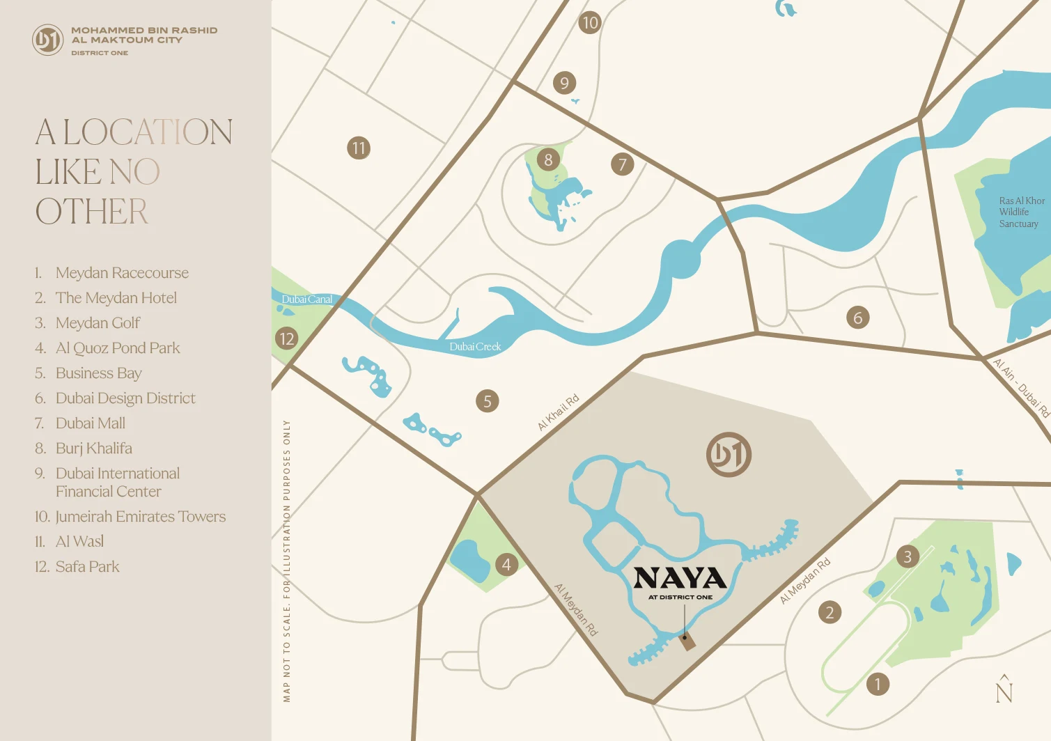 Naya 2 is designed i a way that residential development set in the heart of District One, within the famous Mohammed Bin Rashid (MBR) City in Dubai. It strikes the perfect balance between the convenience of urban living and the tranquility of a peaceful environment, offering residents a serene retreat while being close to the vibrancy of the city. It is situated just a minutes from Downtown Dubai, the façade of this development offers unmatched accessibility to the city’s most popular destinations. There are various important areas such as the iconic Burj Khalifa, Dubai Mall, Business Bay, and the known Meydan Racecourse are all within easy reach, making it a prime location for both convenience and connectivity. With the help of major road networks residents can easily travel and cross the city. This great connectivity also serves as a peaceful retreat from the hustle and bustle of urban life. Surrounded by beautifully designed clear lagoon that enhances the experience of water-based leisure and relaxation, making it an ideal escape for residents.