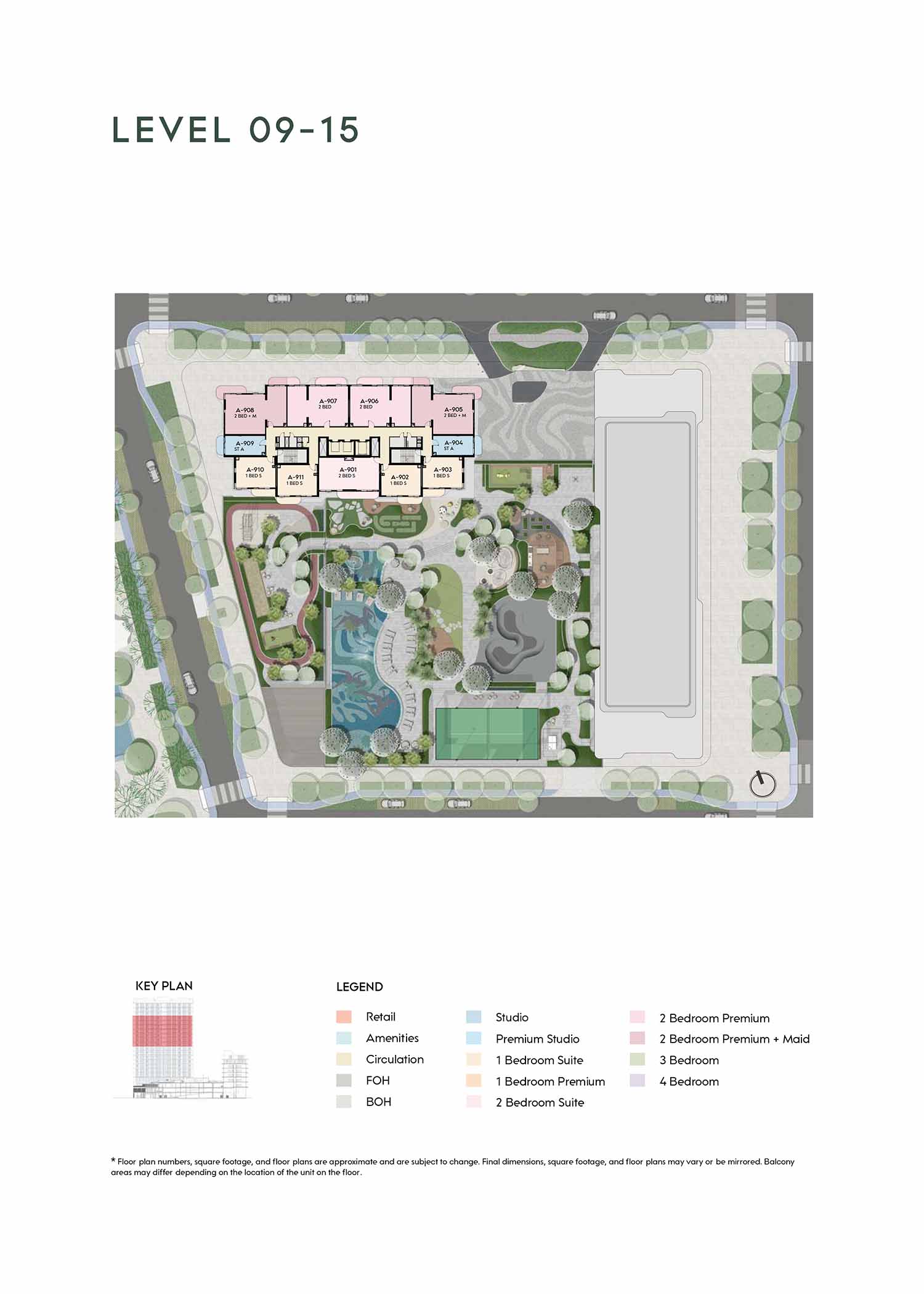 Privacy, comfort and convenience are further reinforced by such smartly positioned bedrooms, bathrooms and storage spaces. Balconies and terraces expand living space outward, providing sweeping views and a connection to the dynamic neighbourhood below.