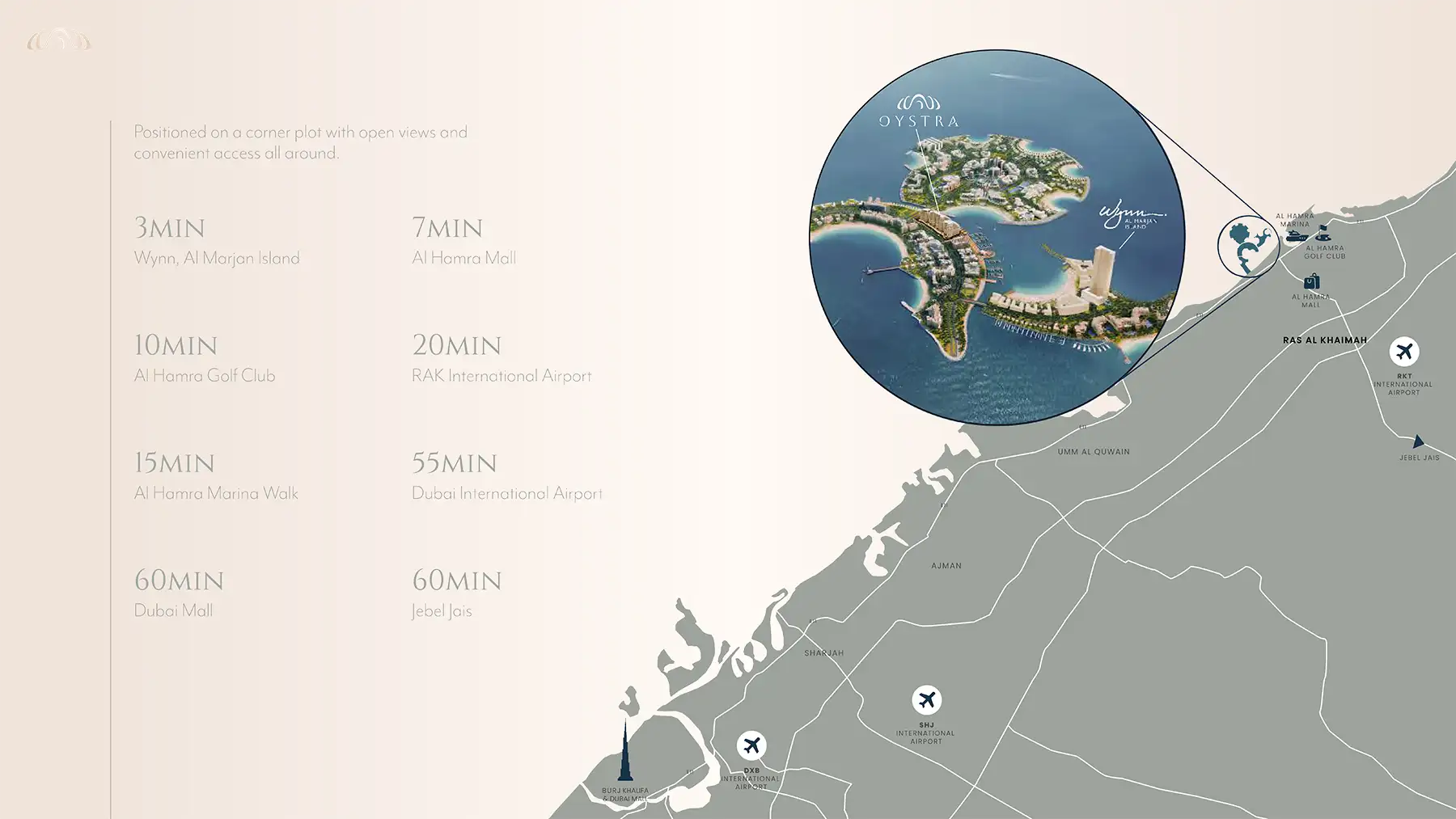 Oystra at Al Marjan Island, Ras Al Khaimah, offers its perfect setting on the stunning man-made island, best known for its tranquil beaches, clear sea waters and spectacular surroundings on the Arabian Gulf. An emerging luxury destination, it marries the purity of coastal living with proximity to the amenities of the city. With so many exciting projects happening such as the new Wynn Casino Resort and other hotels being developed, it’s a burgeoning investment location for the UAE. Living here is living in peaceful retreat while remaining near the excitement and energy of the city.