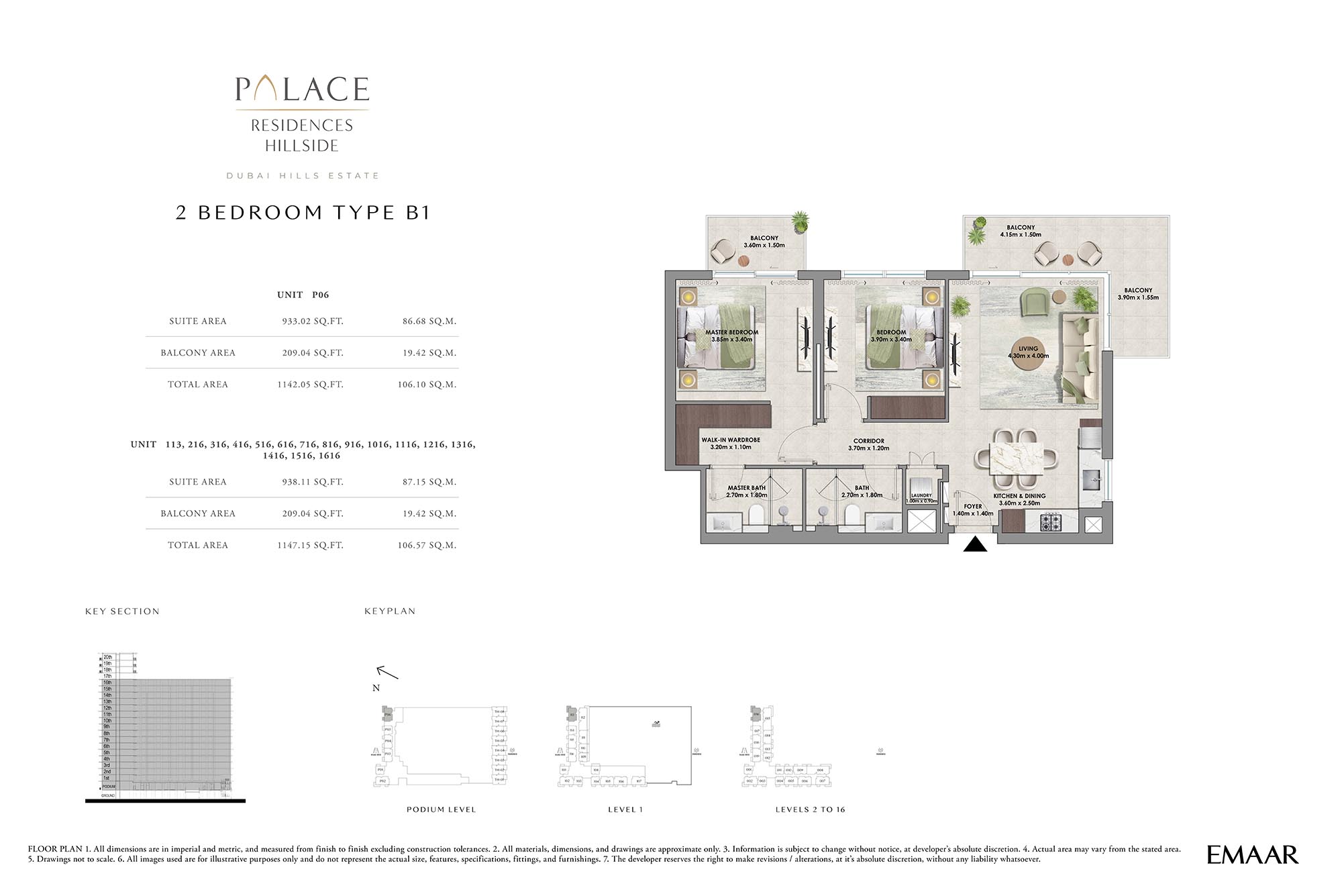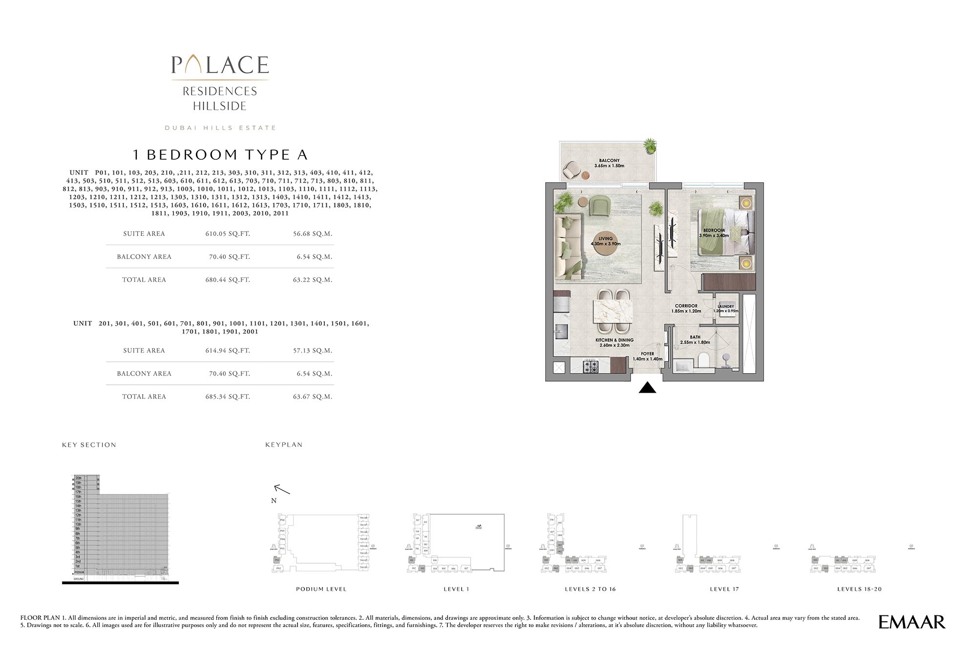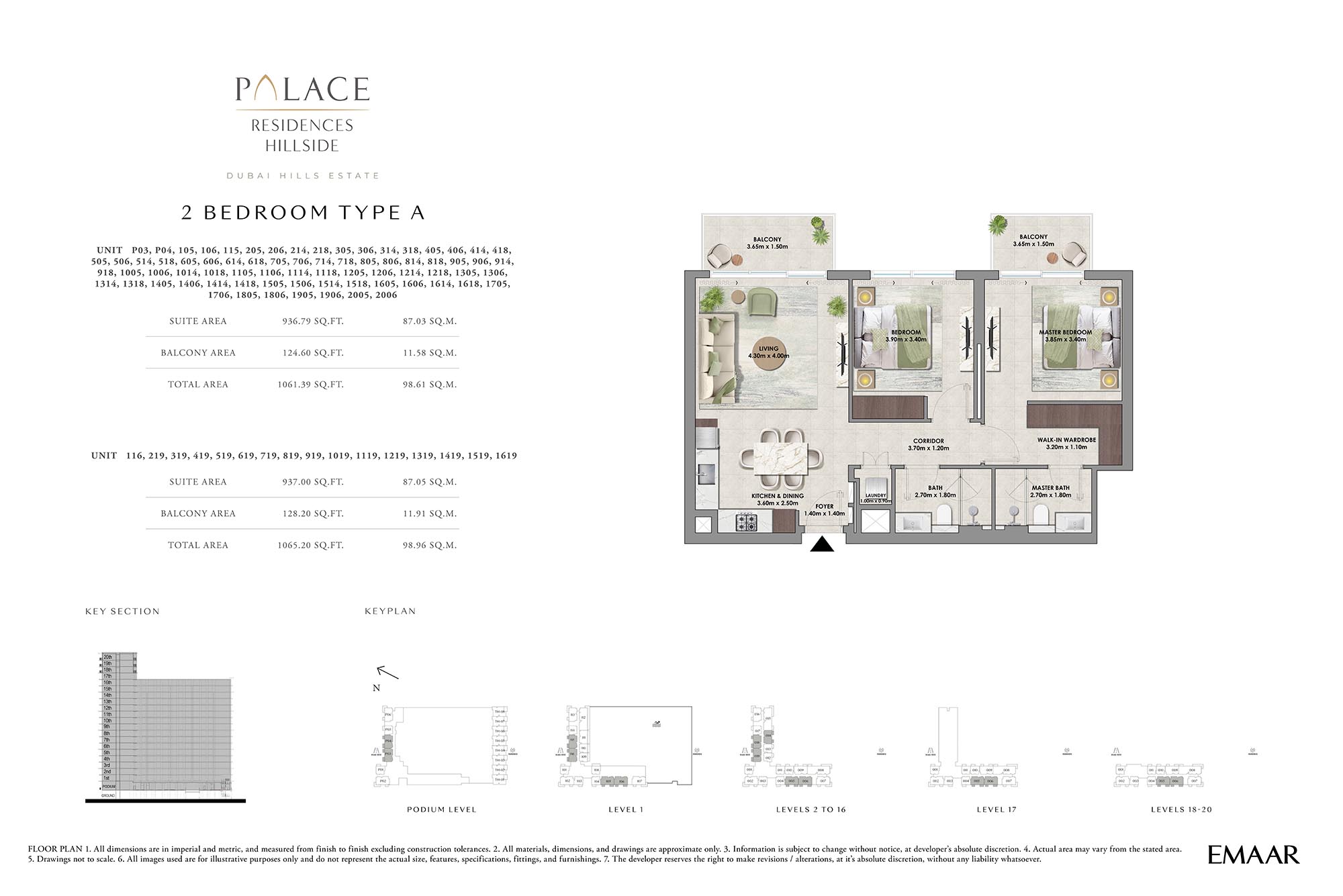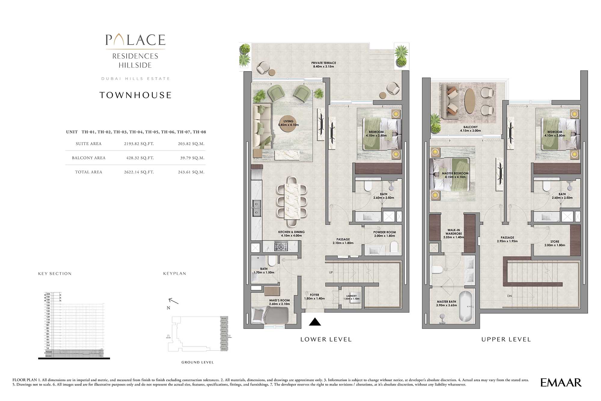 Palace Residences Hillside is a combination of 1 to 3-bedroom apartments and 3-bedroom elegant townhouses planned with elegant floor plans at Dubai Hill Estate. The property is offered with 149 one bedroom, 167 two-bedroom and 35 three-bedroom units and only 8 three-bedroom townhouses with distinctive features. The residences are designed to offer a combination of branded luxury living and resort-style indulgence matching to the needs and preferences of family as well as professionals. The property is having cozy bedrooms, open living and dining area, modern kitchens with automatic appliances and scenic view from windows and balconies.