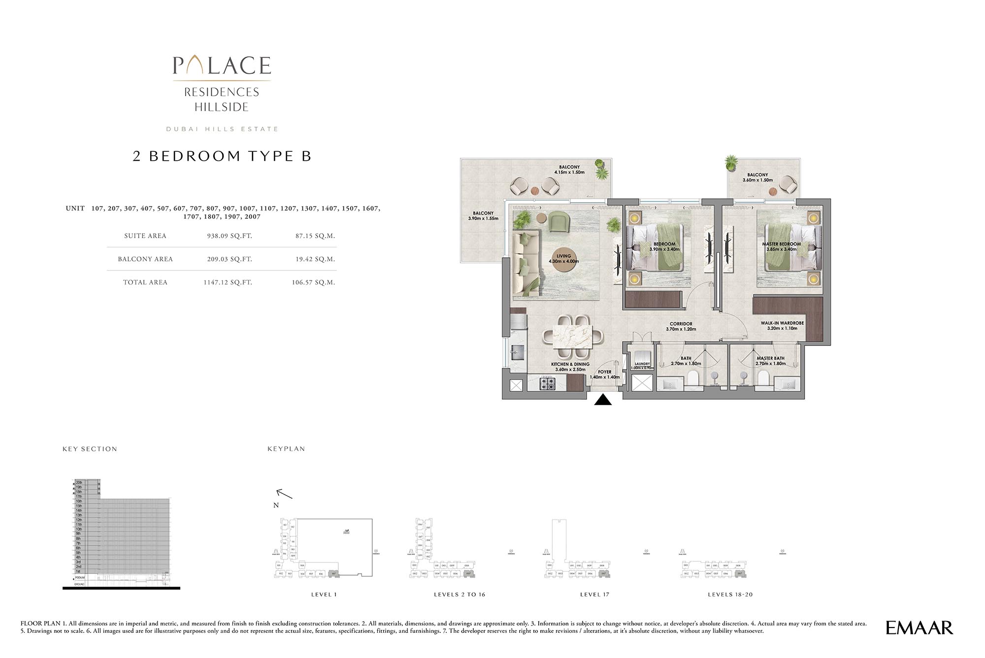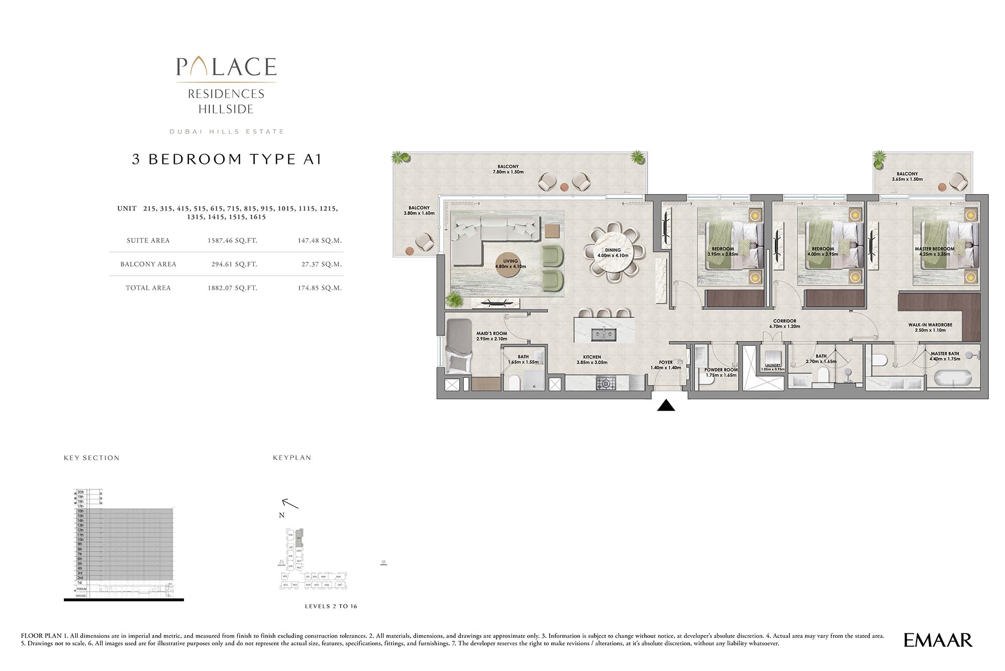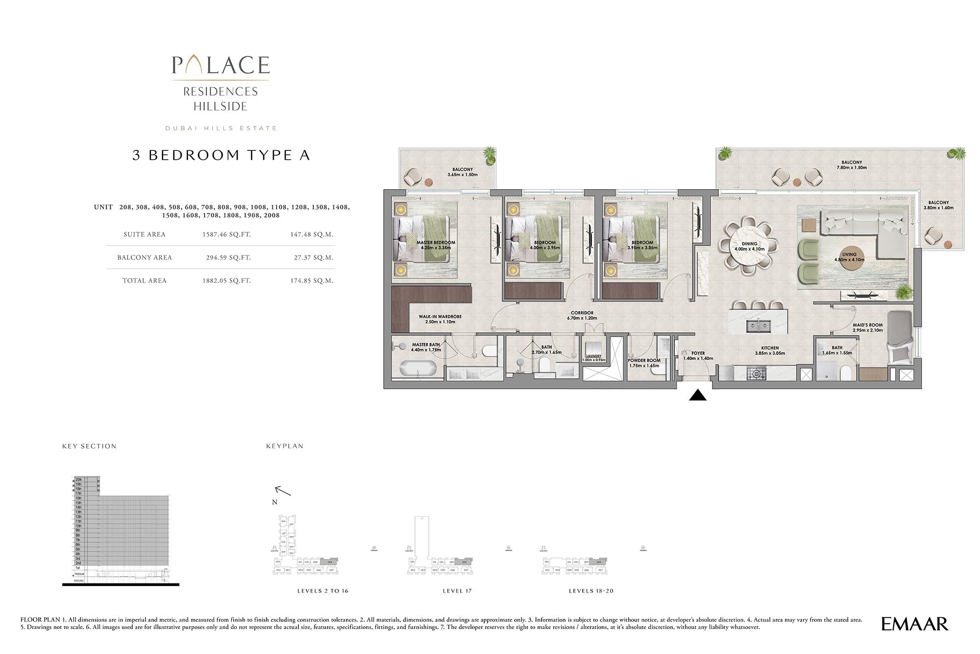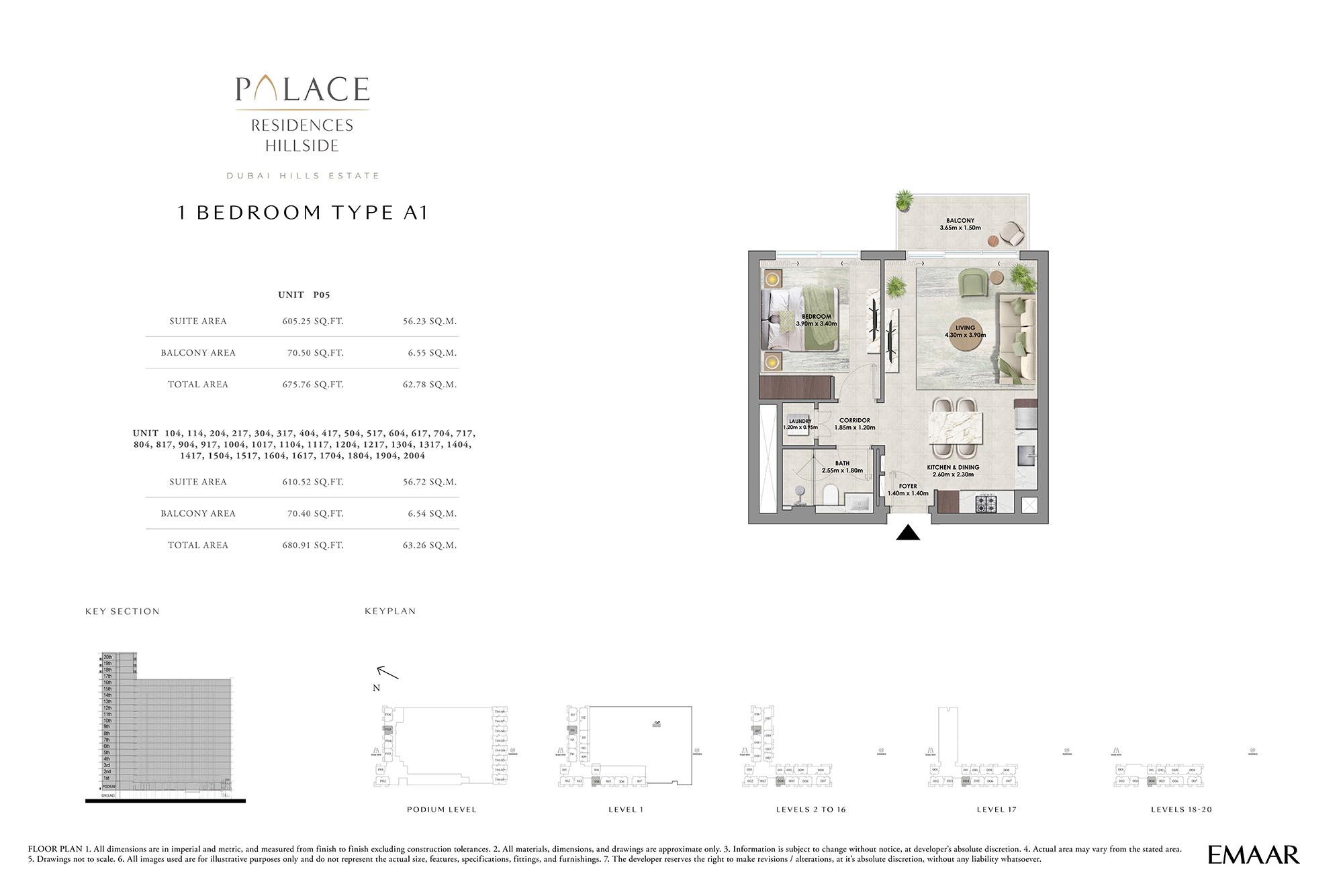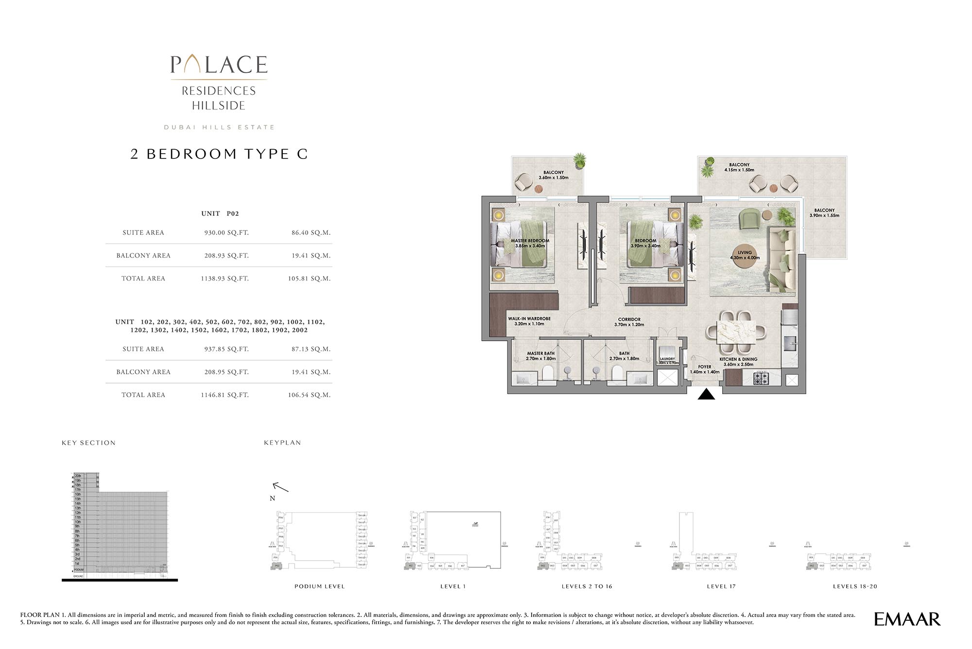 Palace Residences Hillside is a combination of 1 to 3-bedroom apartments and 3-bedroom elegant townhouses planned with elegant floor plans at Dubai Hill Estate. The property is offered with 149 one bedroom, 167 two-bedroom and 35 three-bedroom units and only 8 three-bedroom townhouses with distinctive features. The residences are designed to offer a combination of branded luxury living and resort-style indulgence matching to the needs and preferences of family as well as professionals. The property is having cozy bedrooms, open living and dining area, modern kitchens with automatic appliances and scenic view from windows and balconies.