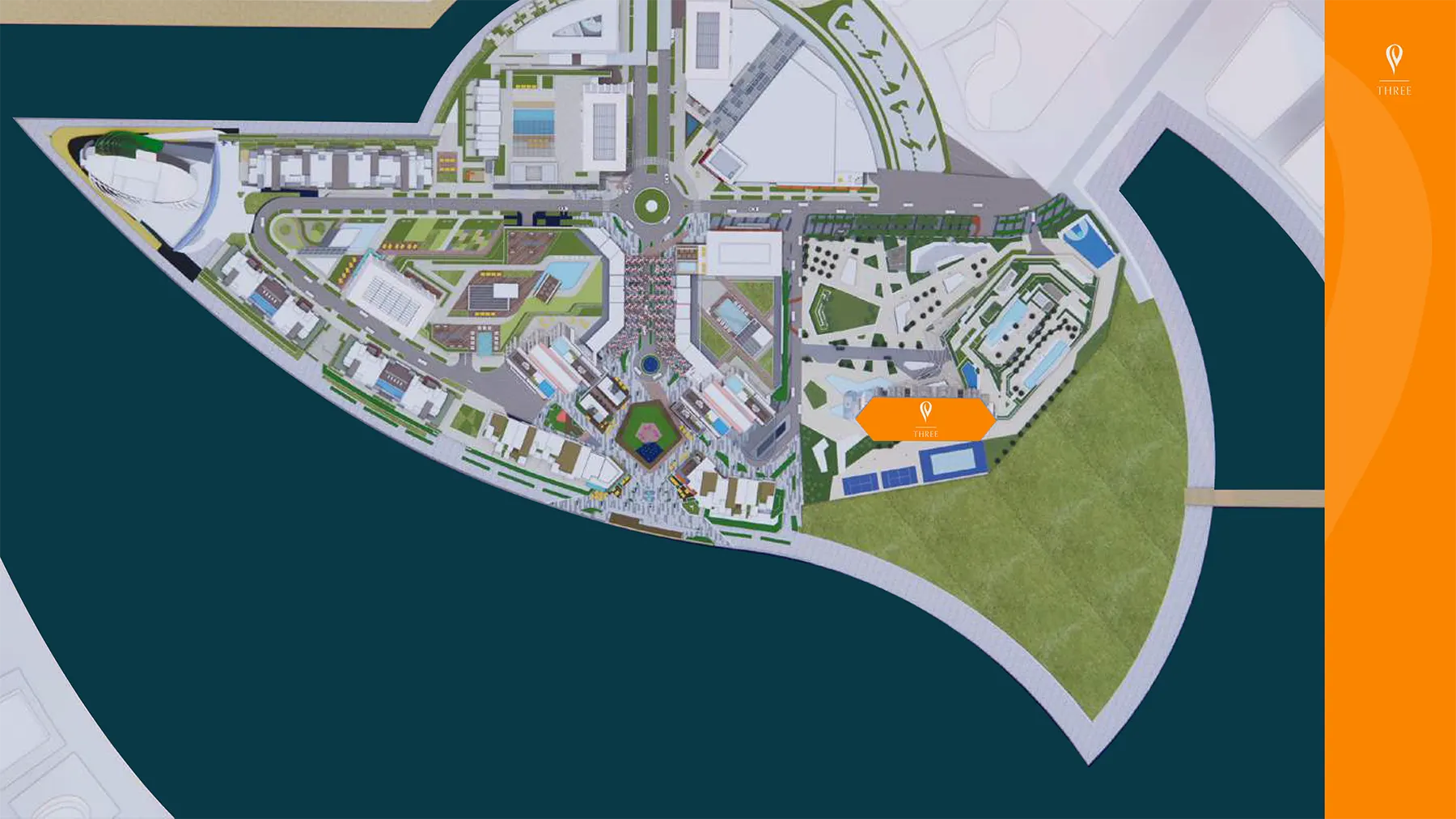 Peninsula Three by Select Group, an outstanding waterfront community, is the core component of Peninsula. An innovative master plan of the highest calibre that perfectly combines urban lifestyle with outdoor leisure. This self-sufficient island of homes is designed for integrated living and is enveloped in lush green space and a range of sports facilities, such as tennis courts, basketball courts, a skate park, and landscaped areas that encourage an active lifestyle.