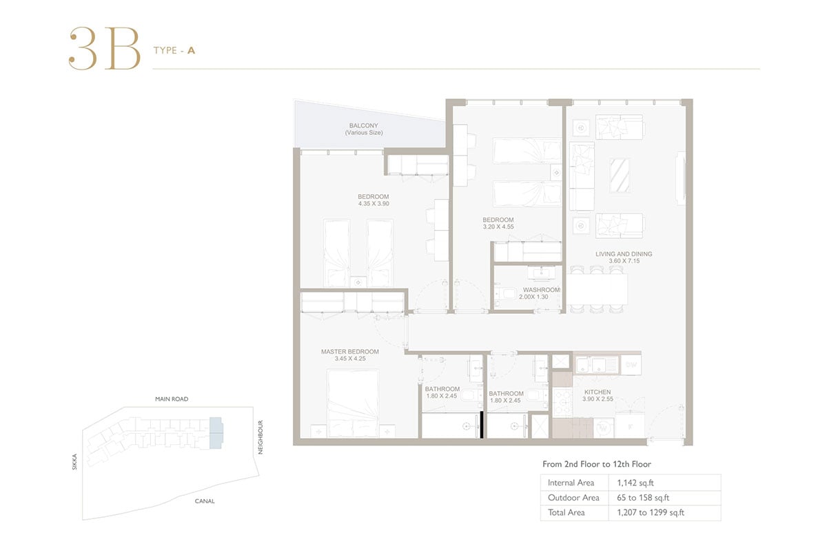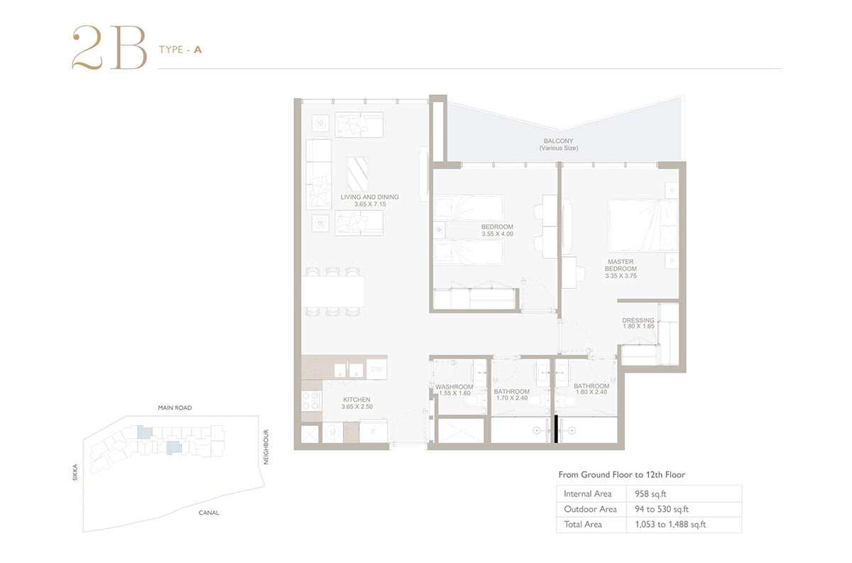 Reportage Perla 3 has some of the most incredible studios, one- to three-bedroom apartments ranging from 400 to 1447 sq. ft., whereas the luxury four-bedroom townhouses are available from 2093 to 2532 sq. ft. area. It elevates the level of class and standard that your lifestyle maintains to a new level altogether.