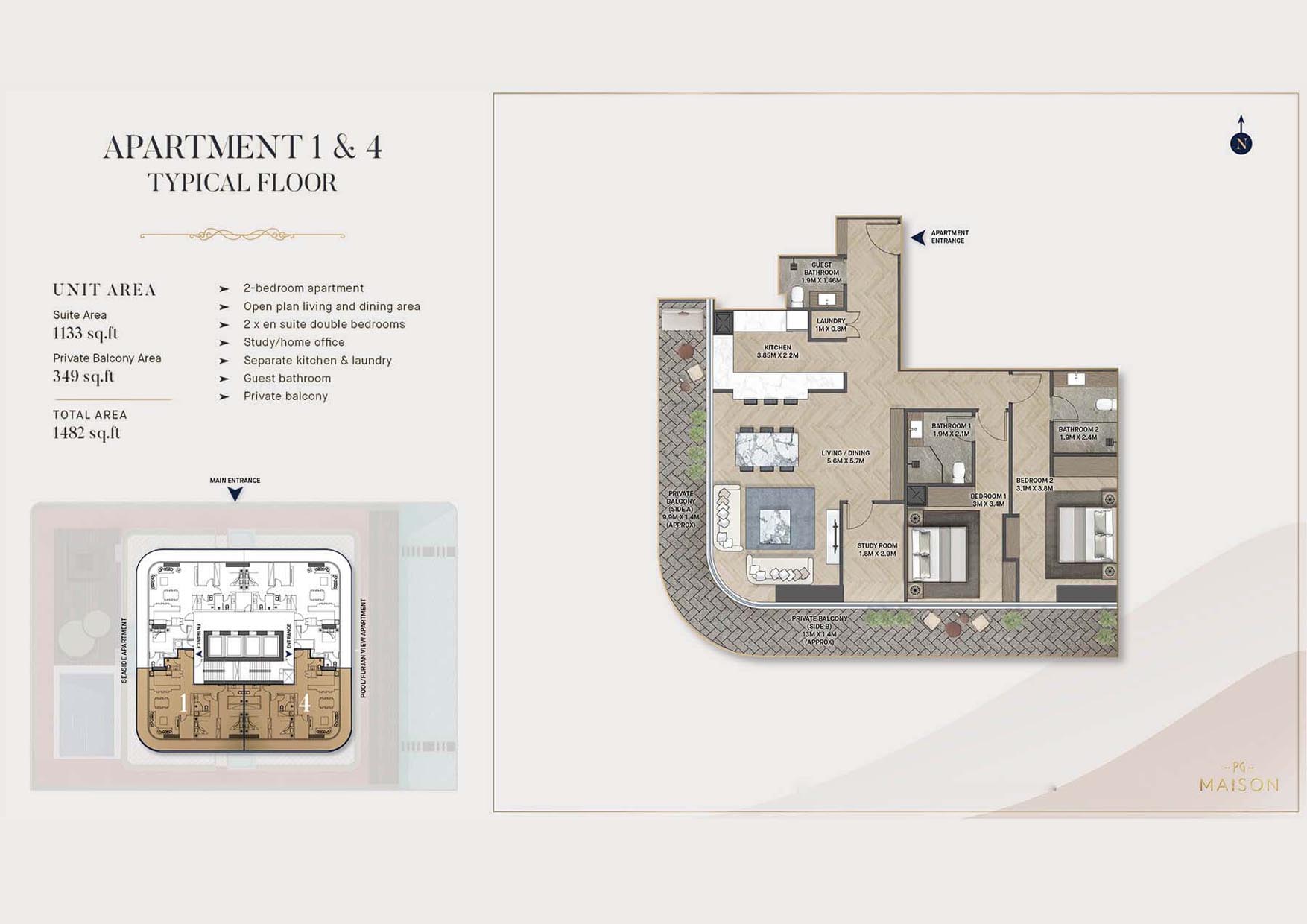 With intelligently designed floor plans, PG Maison is redefining space efficiency in every form of living in Al Furjan. Boasting well-planned layouts, the stunning 2 Bedroom apartments have living, dining and private areas that flow freely into one another. The home features all the conveniences necessary for modern living fully fitted kitchen, separate study and home office and en-suite bedrooms, all designed for comfort and easy use.