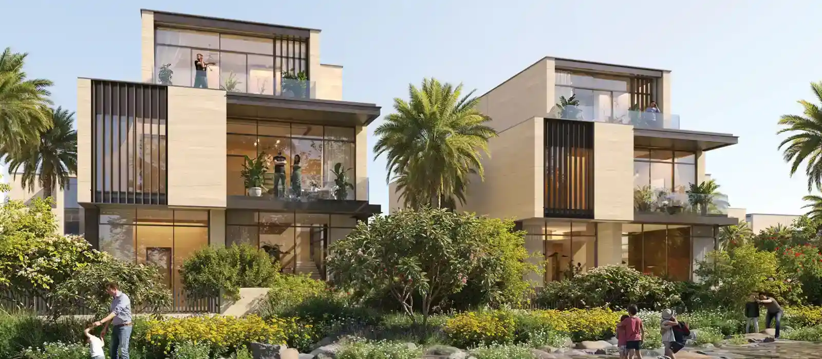 - with private landscaped gardens, double-height living areas, and a continuous indoor-outdoor connection for an enveloping living style.
