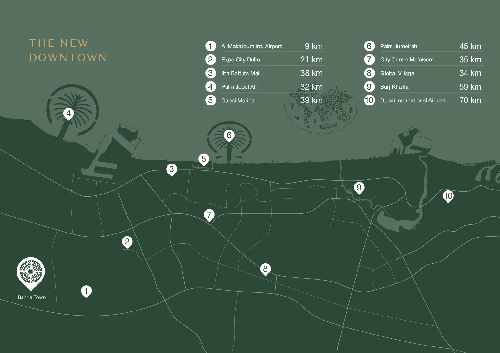 Raiha Villas at Waada, Dubai South is situated in the ideal location at Bahria Town, providing an opulent lifestyle, well-connected locale to the residents. Connected to Sheikh Mohammed Bin Zayed Road and Emirates Road, you have a quick way to travel throughout the rest of the city and the other emirates. It is located just a few minutes away from the Al Maktoum International Airport and Expo City Dubai, making it perfect for travellers and businessmen. Situated close to major commercial districts such as Dubai Logistics City and Dubai Industrial City, its location also allows easy access to schools, retail outlets and leisure facilities in a fully integrated community setting, and offers nearby hub with dining and shopping.