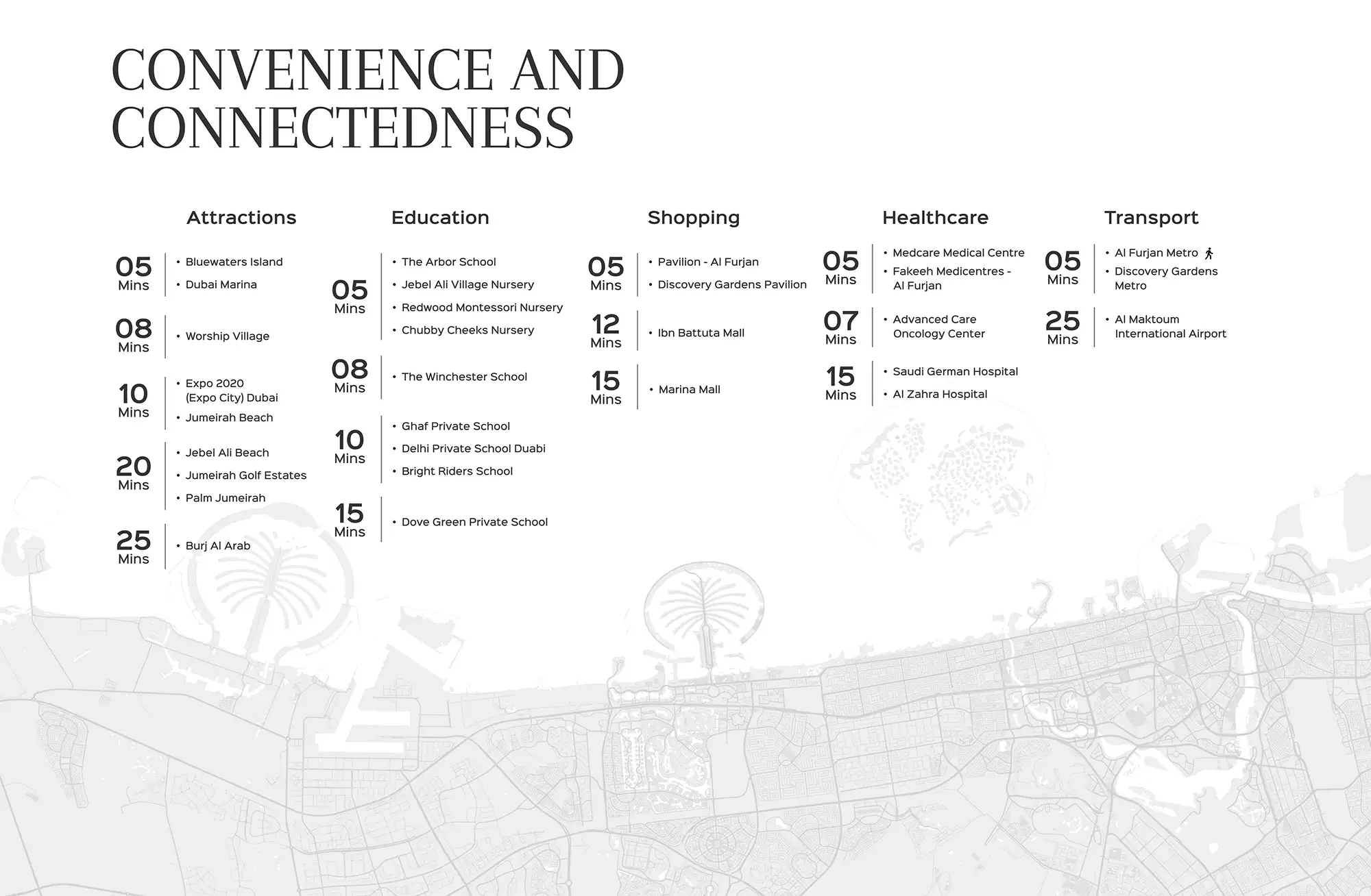 A varied palette of lifestyle and wellness amenities are a part of the master plan, designed to enrich daily life. Residents have access to the Al Furjan Club with swimming pools, a sports court and more, plus walking and biking trails, open green spaces, a mosque and metro stations in close proximity for easy connectivity. Each component works together to provide a balanced, convenient and active lifestyle that encompasses both form and function as well as modern design and community planning.