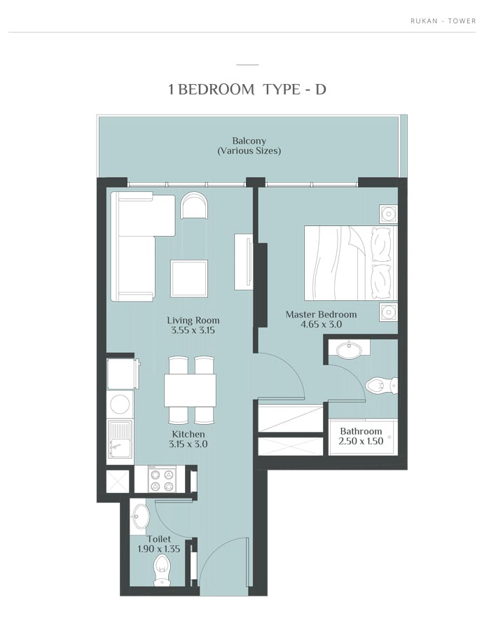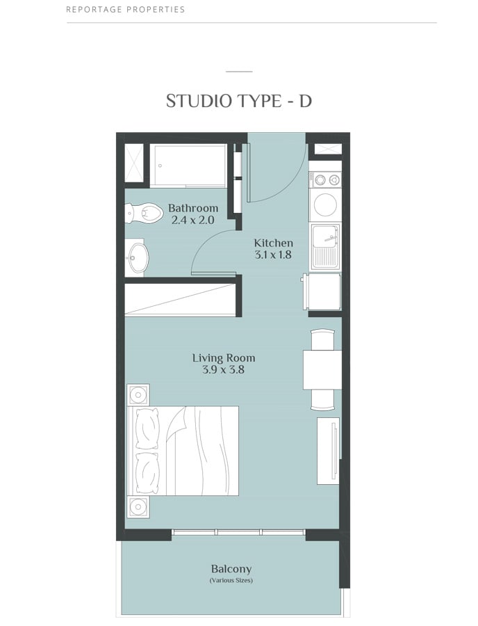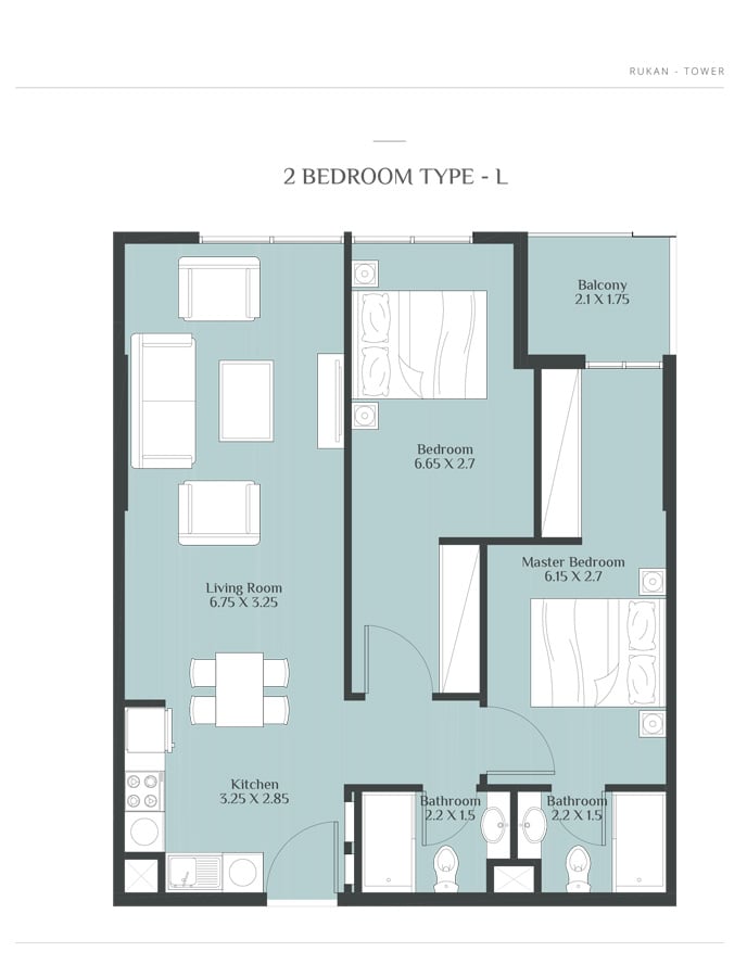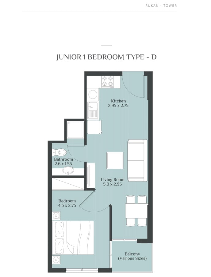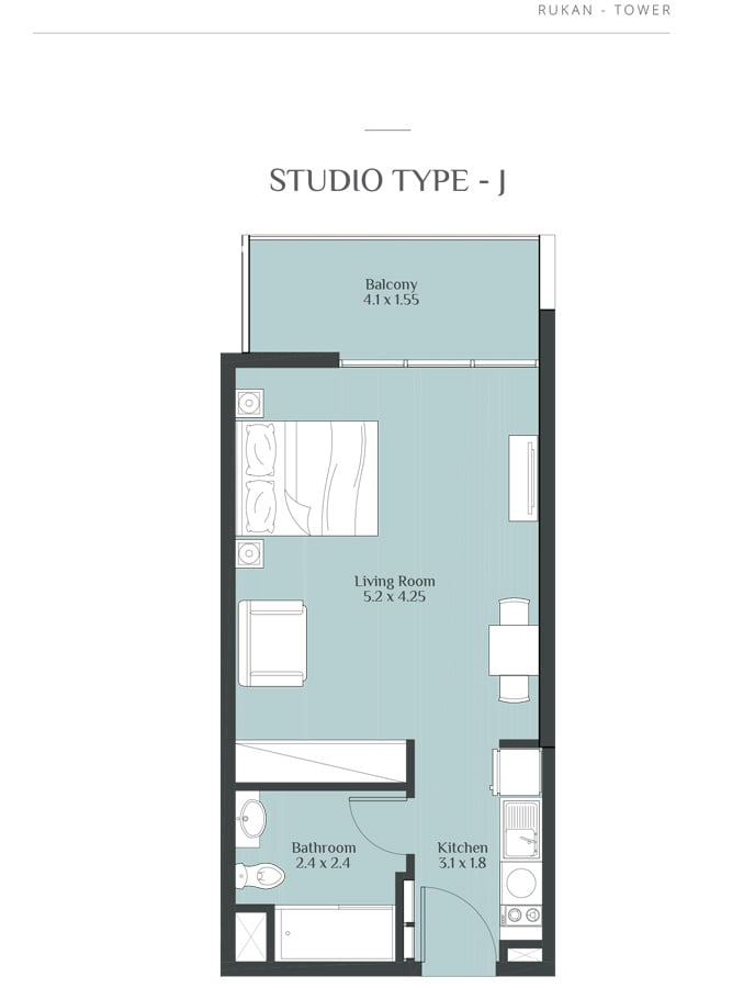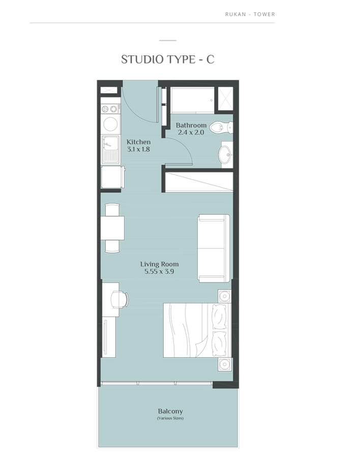Coming in different sizes, the floor plans of the residences at Rukan Towers are designed by Reportage Properties to make your stay more comfortable and memorable. The studio, 1 & 2 bedroom apartments with sizes ranging in between 390 to 800 sq. ft. give you the chance to choose the option that fits into your specification.