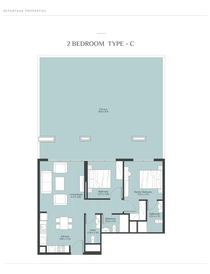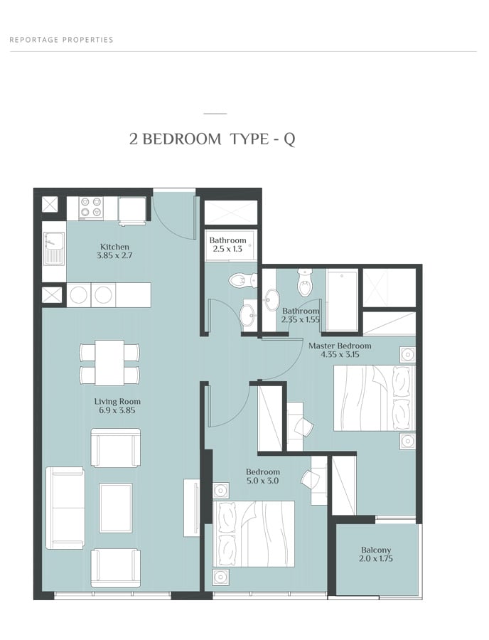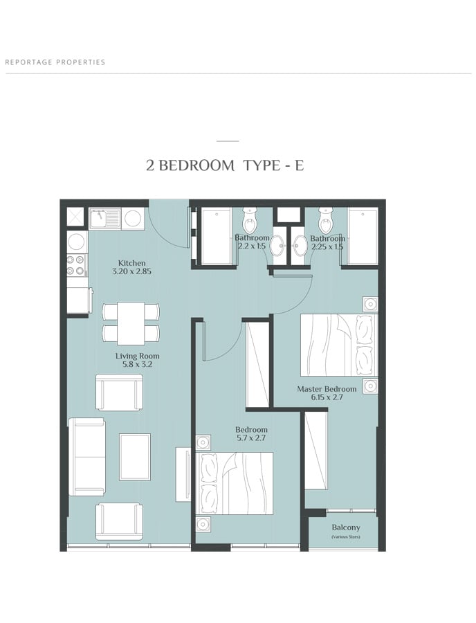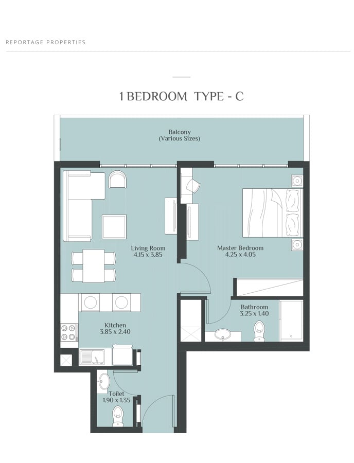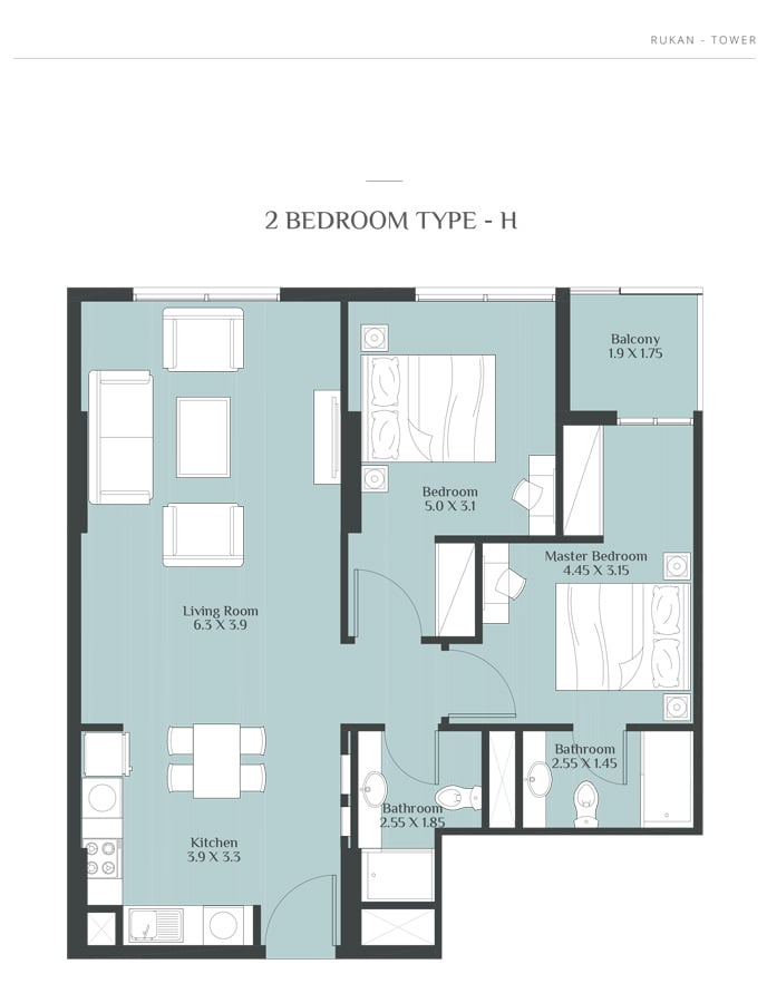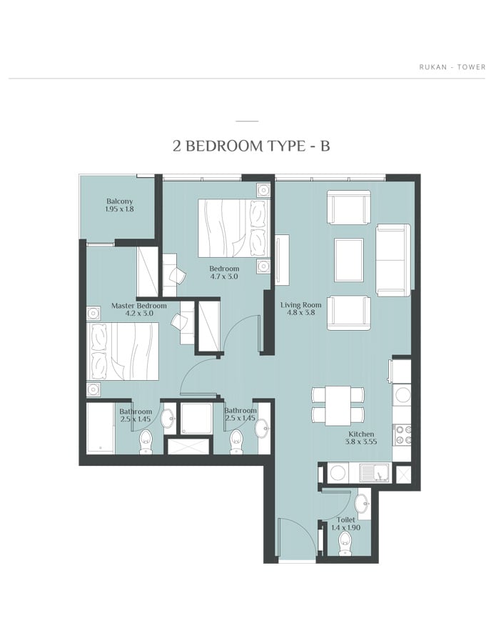 Coming in different sizes, the floor plans of the residences at Rukan Towers are designed by Reportage Properties to make your stay more comfortable and memorable. The studio, 1 & 2 bedroom apartments with sizes ranging in between 390 to 800 sq. ft. give you the chance to choose the option that fits into your specification.