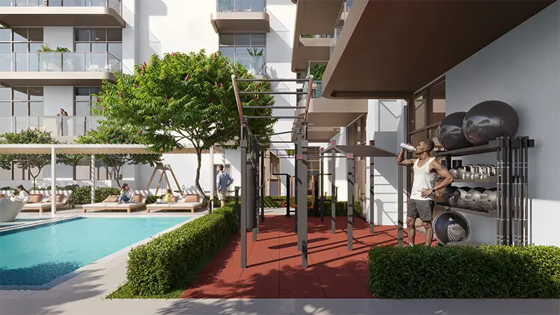 Leisure, wellness and purposeful living are at the core of this project. Interiors are bathed in natural light, accented with warm materials and brushed steel finishes, and superbly appointed with the perfect balance of flow, functionality, and glad-to-be-home comfort. Residents have access to resort-style amenities, such as a swimming pool with sun loungers, children’s play areas, indoor recreational areas, and state-of-the-art gym with an outside CrossFit zone.