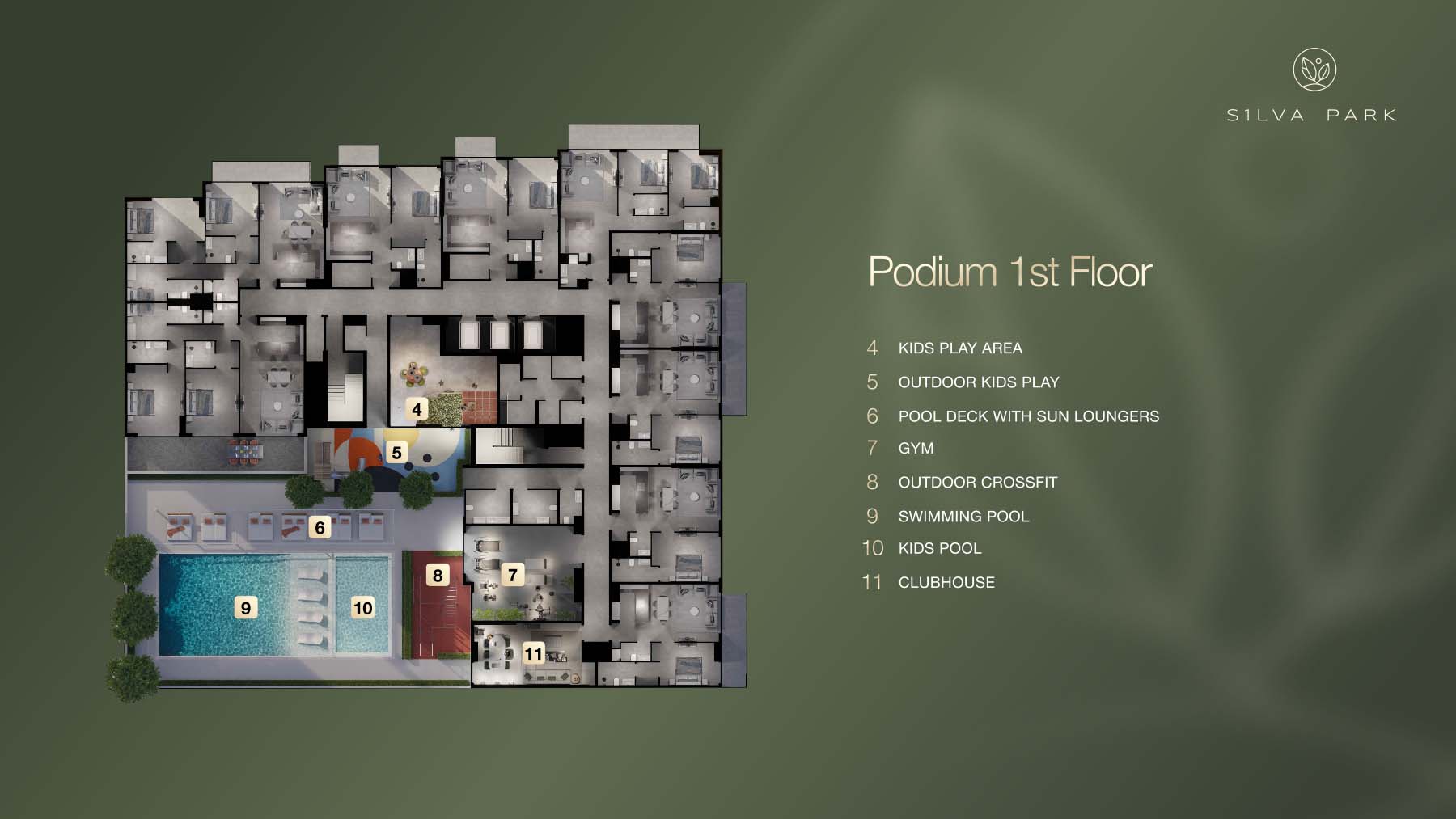 S1lva Park located in JVT Floor plans including studio, 1, 1.5, 2 and 2.5-bedroom apartments, the structured parking and resident fitness center and pool. From compact efficient plans for singles to spacious homes for growing families, these designs embrace a modern sensibility with everything today's people need to feel comfortable and happy.