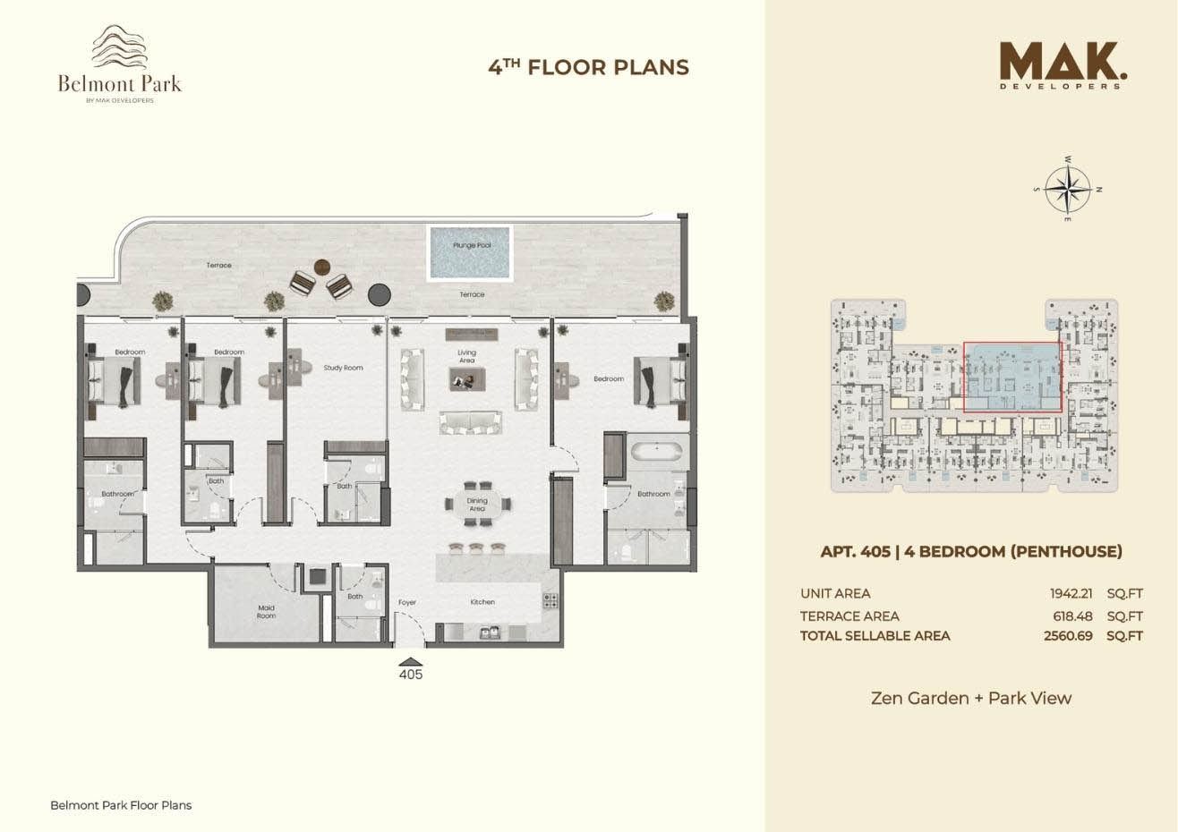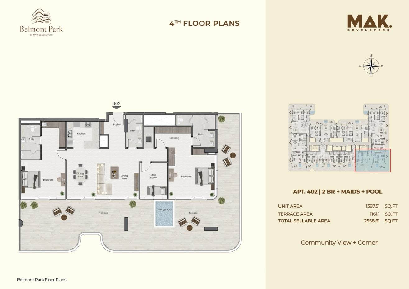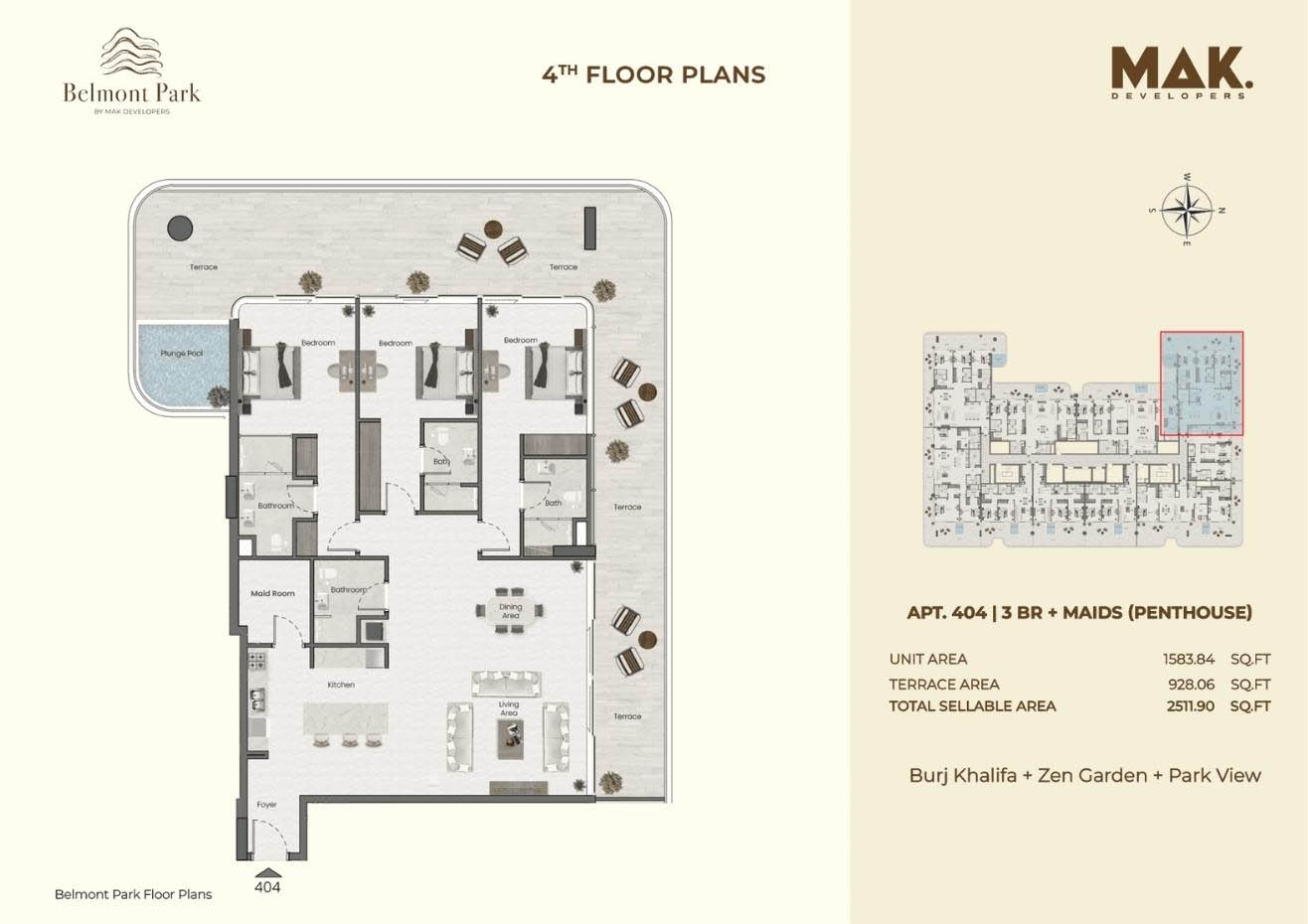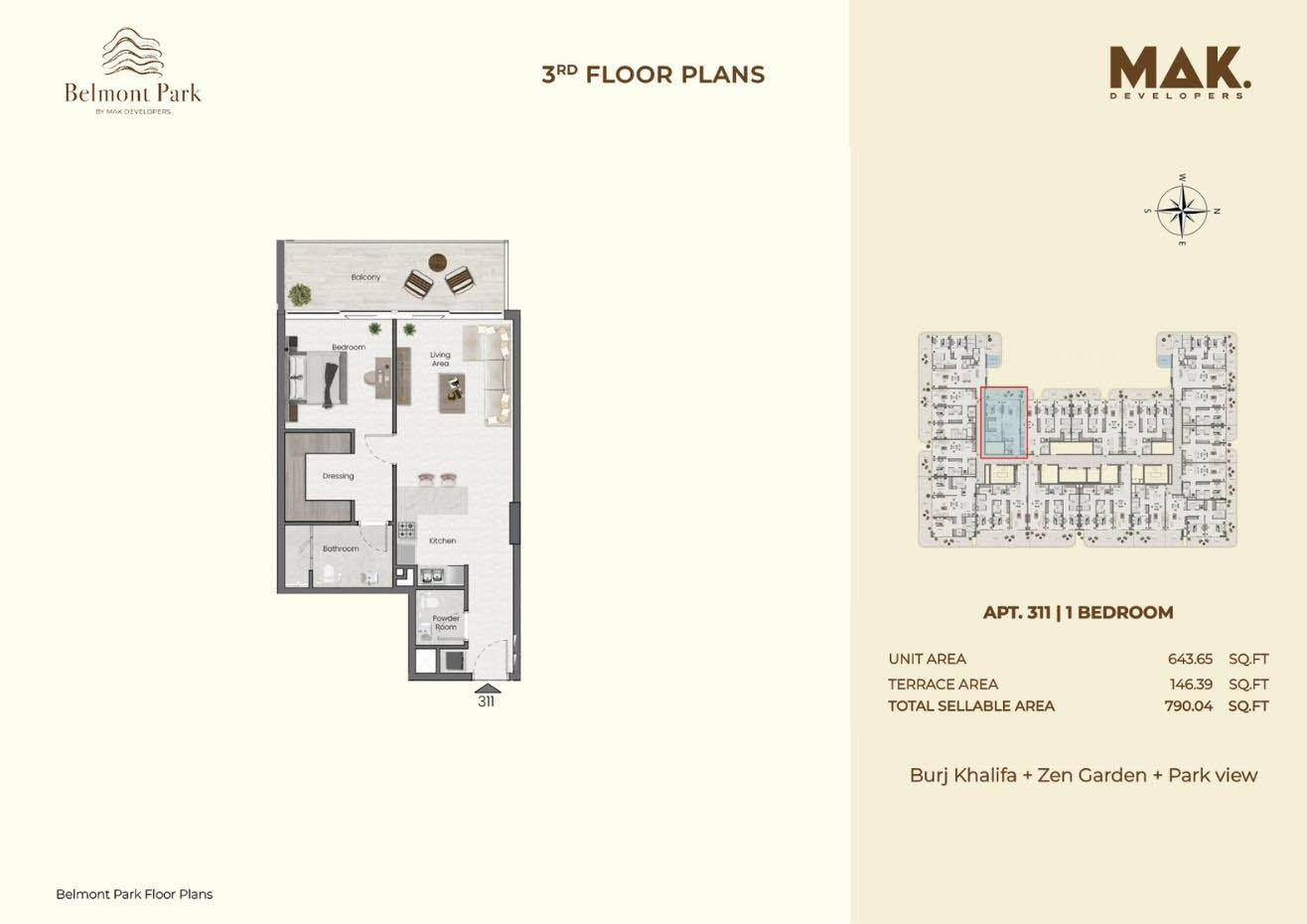 Saddlewood Park is developed by MAK Developers that offers various floor plan of 1 & 2-bedroom apartments and 3 & 4-bedroom penthouses in Meydan, Dubai. It includes various type of unit with different flooring sizes and large storage area. It offers spacious bedrooms with storage space, living room along with floor to ceiling large sized glass windows that allows ample light throughout the floor. Kitchens are equipped with different automatic appliances which has large balconies offering stunning and beautiful view. All the smart home appliances are available along with the best quality materials and top-notch finishes.
