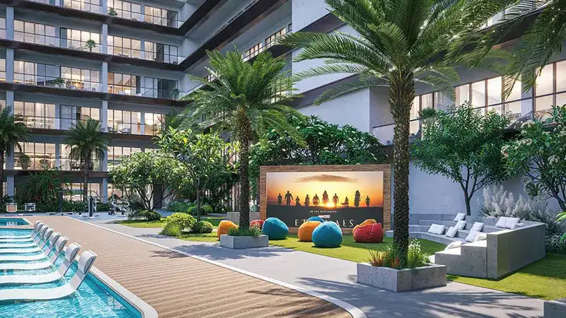 - Residents can enjoy luxury amenities, such as an infinity pool with a deck, both outdoor and indoor gyms, a kids’ play area, running track an outdoor cinema and even a cigar lounge.