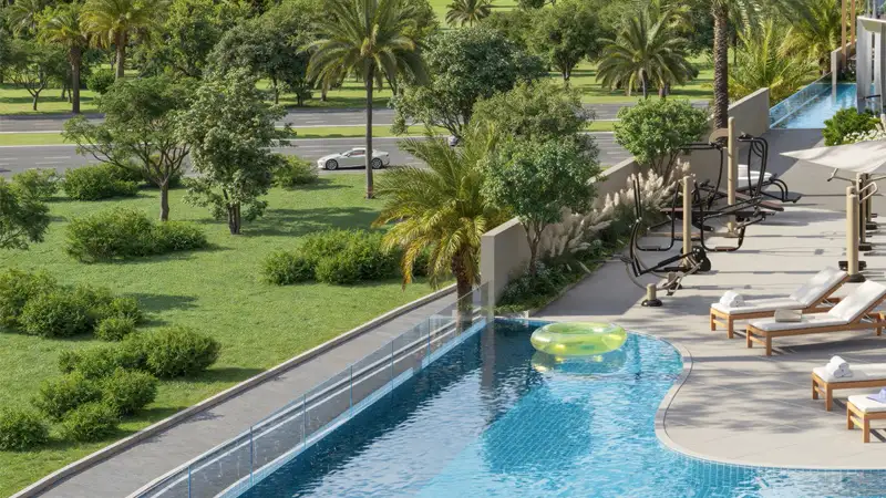 - Offered with a range of top-class amenities such as private swimming pool, modern fitness center, yoga deck, kids' play area etc.
