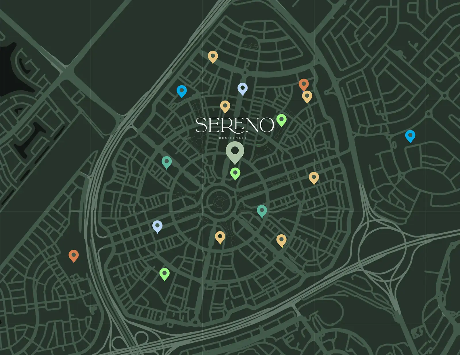 The Sereno Residences by Svarn Development Experience timeless elegance with a bold vision for an upscale relaxed lifestyle. Featuring an expertly crafted master plan, the community promises seamless living of diverse spaces, with fitness-focused amenities. Features that benefit residents include a huge central pool, indoor gym, and children’s play area, in addition to green zones promoting interaction and relaxation. Retail spaces promote easy walking convenience and station promotes sustainable living. The design facilitates a seamless flow through the property by combining private areas with entertainment zones for an overall wholesome and rejuvenating living experience. Surrounded by the area’s popular landmarks, parks and gems, it will bring an entire master-planned community that’s purposely designed to create a living environment that is ideal for families and individuals, whether they are first home buyer or investors.