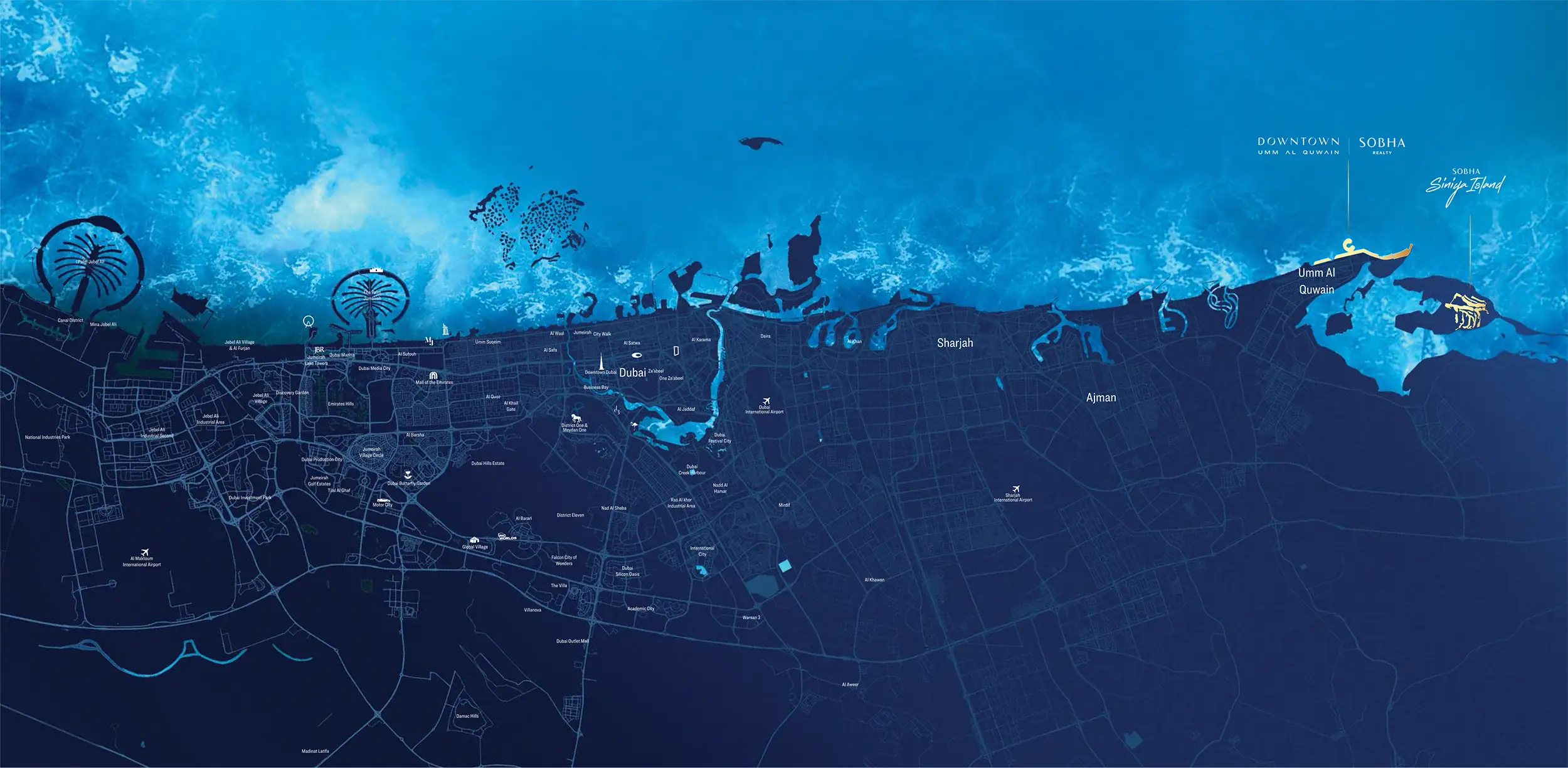 Sobha AquaCrest is located in Downtown Umm Al Quwain, right on the peaceful shores Arabian Sea and gives you a perfect balance of independence and connectivity. Set amongst pristine beaches and an abundance of greenery, the location is a peaceful retreat while allowing easy access to all necessary amenities and city comforts. A carefully designed streetscape, network of pathways and you can easy access to all areas of the Emirate residence providing a holistic living environment where nature peace, yet an active and buzzing modern city life are accessible in natural balance.