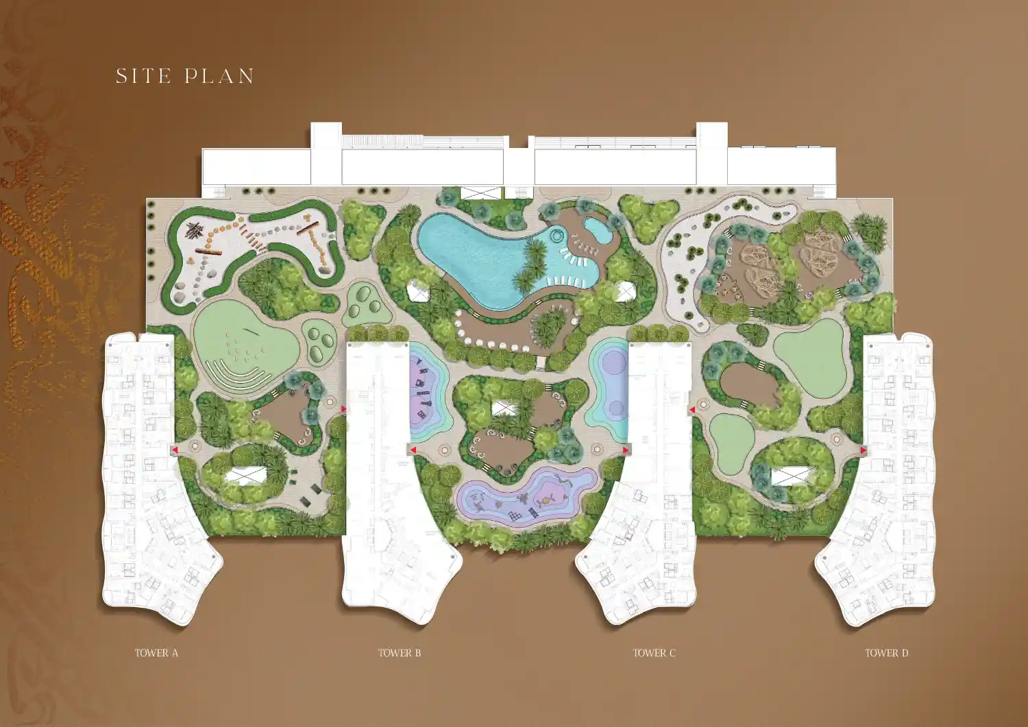 The master plan also focuses on lifestyle, health and recreation. Exclusive areas for fitness and wellness are offered with gyms, yoga decks and meditation decks, cross-fit zones and wellness parks. Parks and recreational enclaves both family and leisure friends scattered around the area such as beach coffee shops, open cinemas, amphitheatres, cultural centres which are also thoughtfully incorporated into the community.