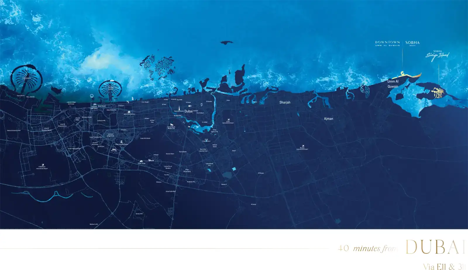 Sobha Aquamount is located at Downtown Umm Al Quwain that is well known for its natural beauty, coastal mangroves and a number of islands. The area is situated on a narrow peninsula and least populated emirates in UAE. It is conveniently connected to the iconic destinations of Dubai and Sharjah through Sheikh Mohammad Bin Zayed Road. The prime location and beauty of island extended by 11 kilometers of unencumbered coastal area along with 7 kilometers of pristine beaches and beach parks that presents both peaceful surroundings and expansive exquisiteness. It is located near to all the necessary amenities such as parks, schools, healthcare facilities, shopping malls, recreational areas, cultural centers and entertainment activities.