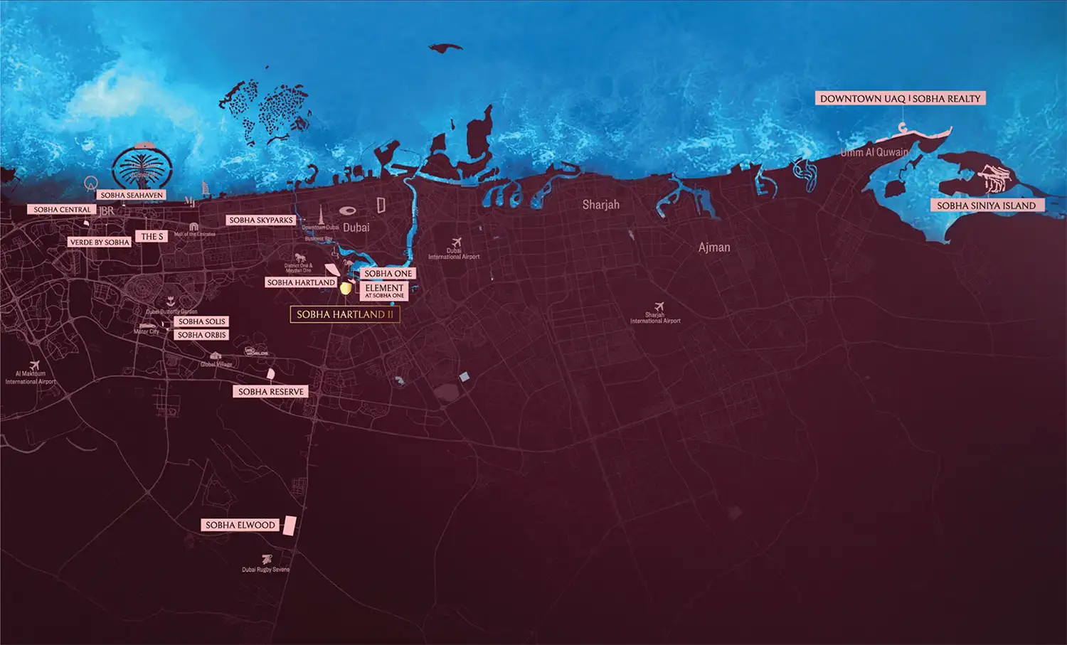 Skyvue Altier by Sobha Realty is situated within the premium community named Sobha Hartland 2 which is located in the heart of Dubai. The community has easy access through major roadways such as Dubai-Al Ain Road and Ras Al Khor Road to the key destinations and iconic landmarks of Dubai. Residents can enjoy travel to famous areas of Dubai such as Downtown Dubai, Burj Khalifa, The Dubai Mall, Business Bay, Dubai Opera, Meydan Racecourse and Palm Jumeirah within few minutes from this community. One of the international airports is near to this area, which allows residents to reach any city across the globe.