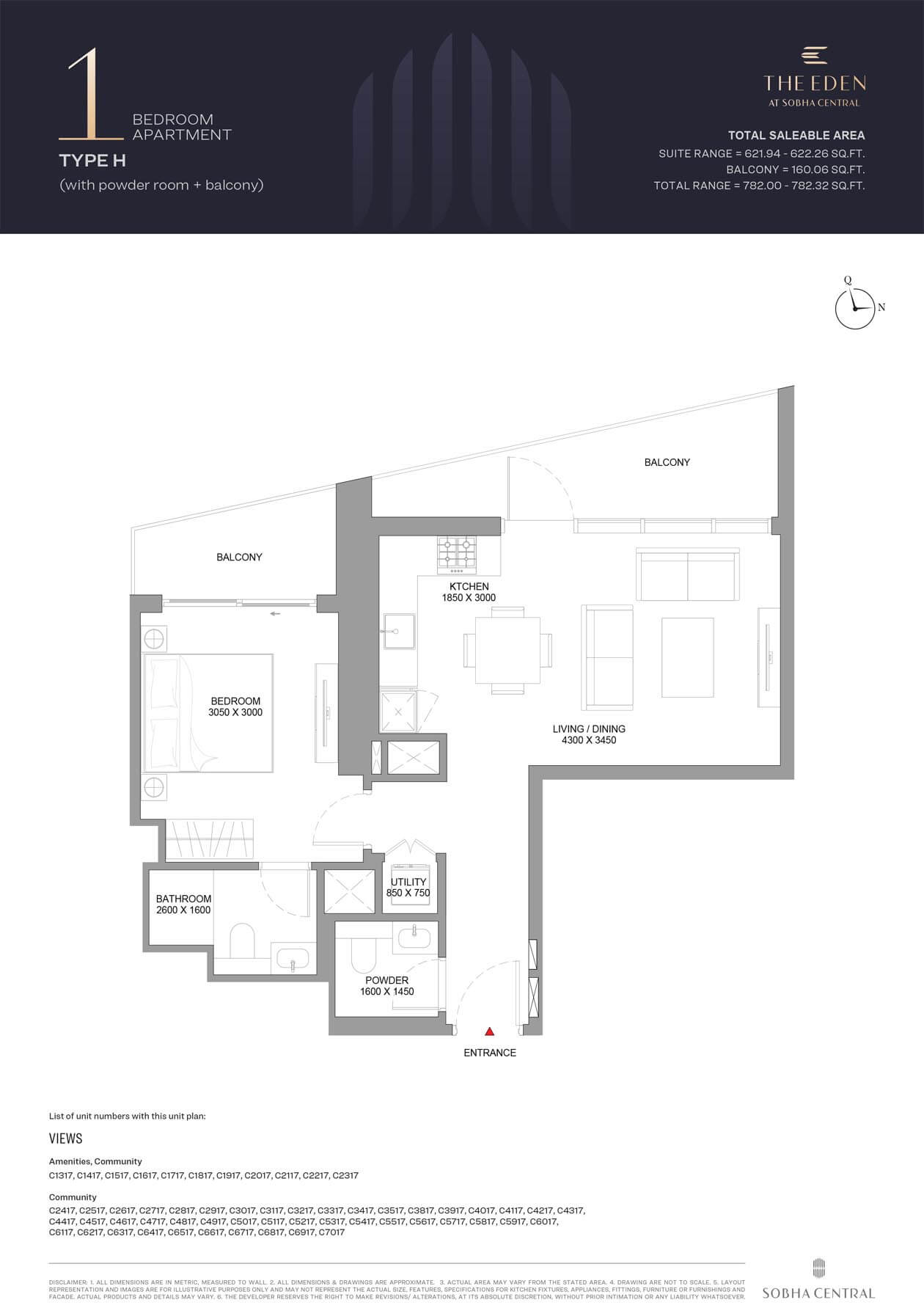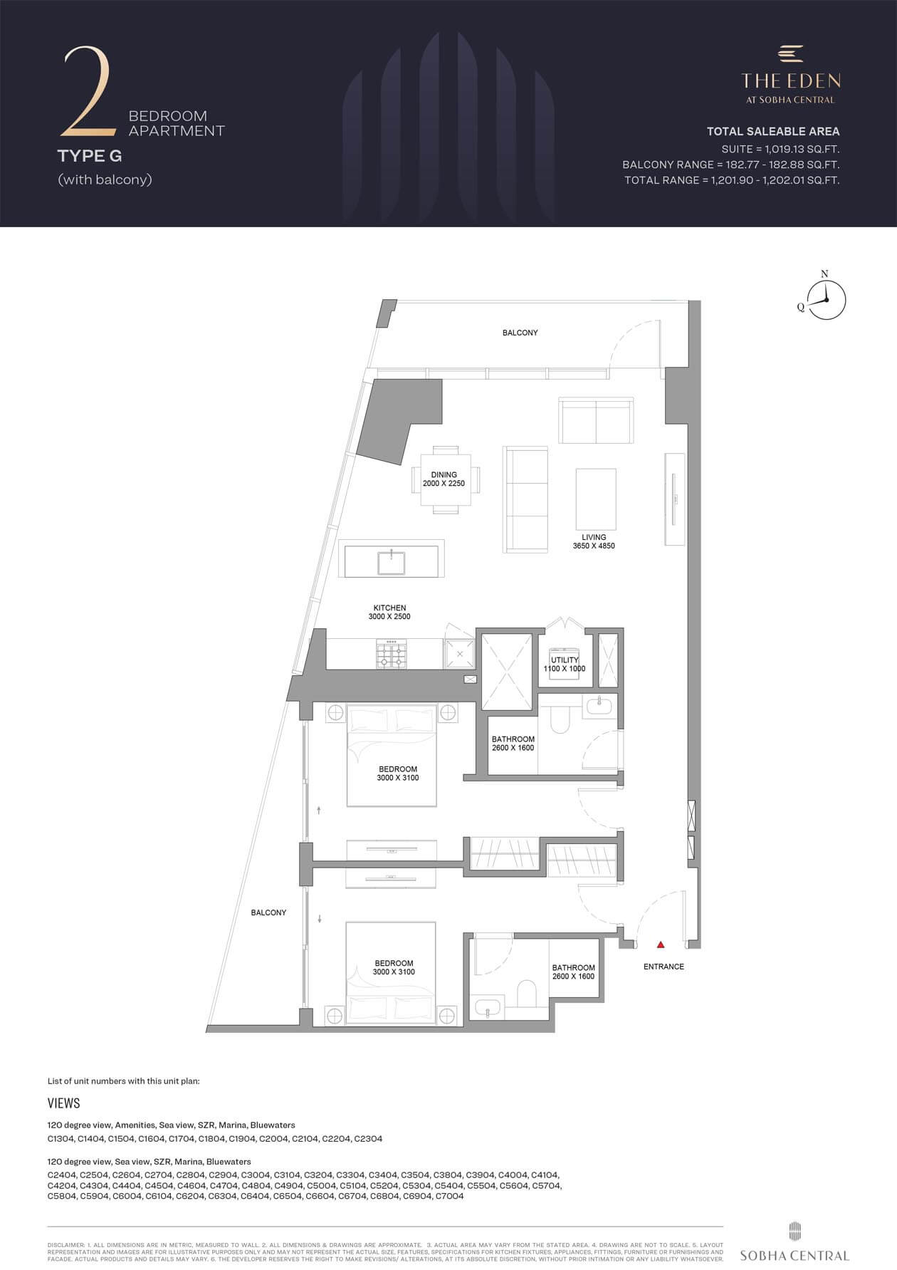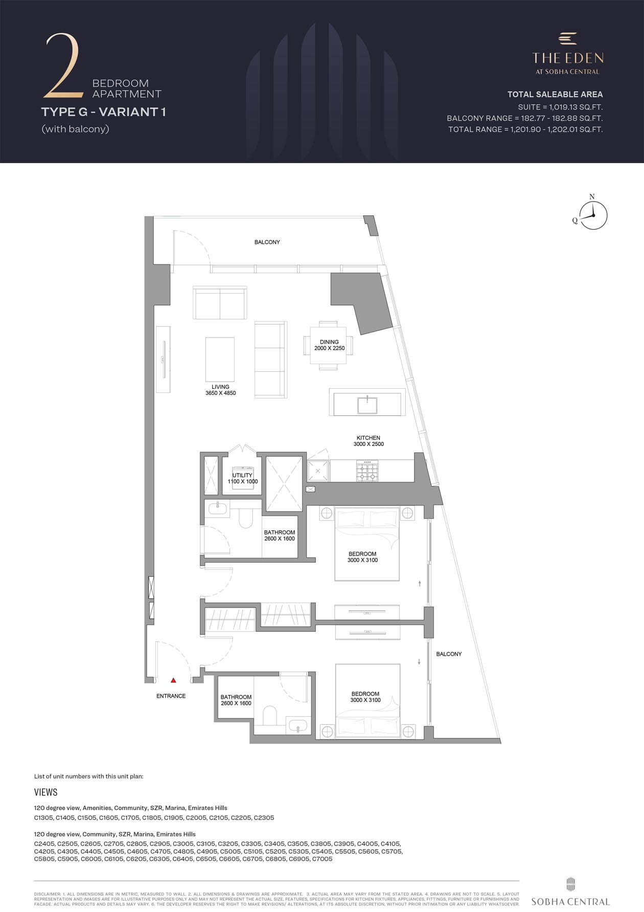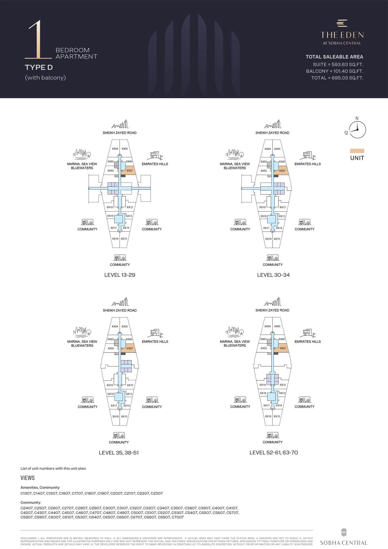 The Eden at Sobha Central consists of 1 and 2-bedroom luxury apartment units with exclusively crafted floor plans. Unit type is different, and some room plans have pounders, hot-water supply rooms, or storages to be more practical. Each apartment boasts generous living spaces, modern kitchens, stylish rooms and large balconies, with breathtaking views of Dubai, Emirates Hill or of the Arabian Gulf.