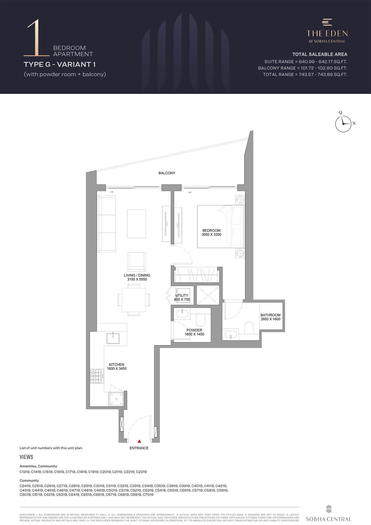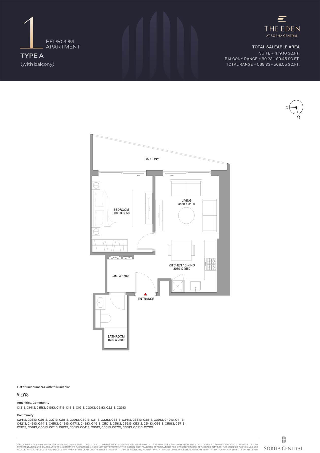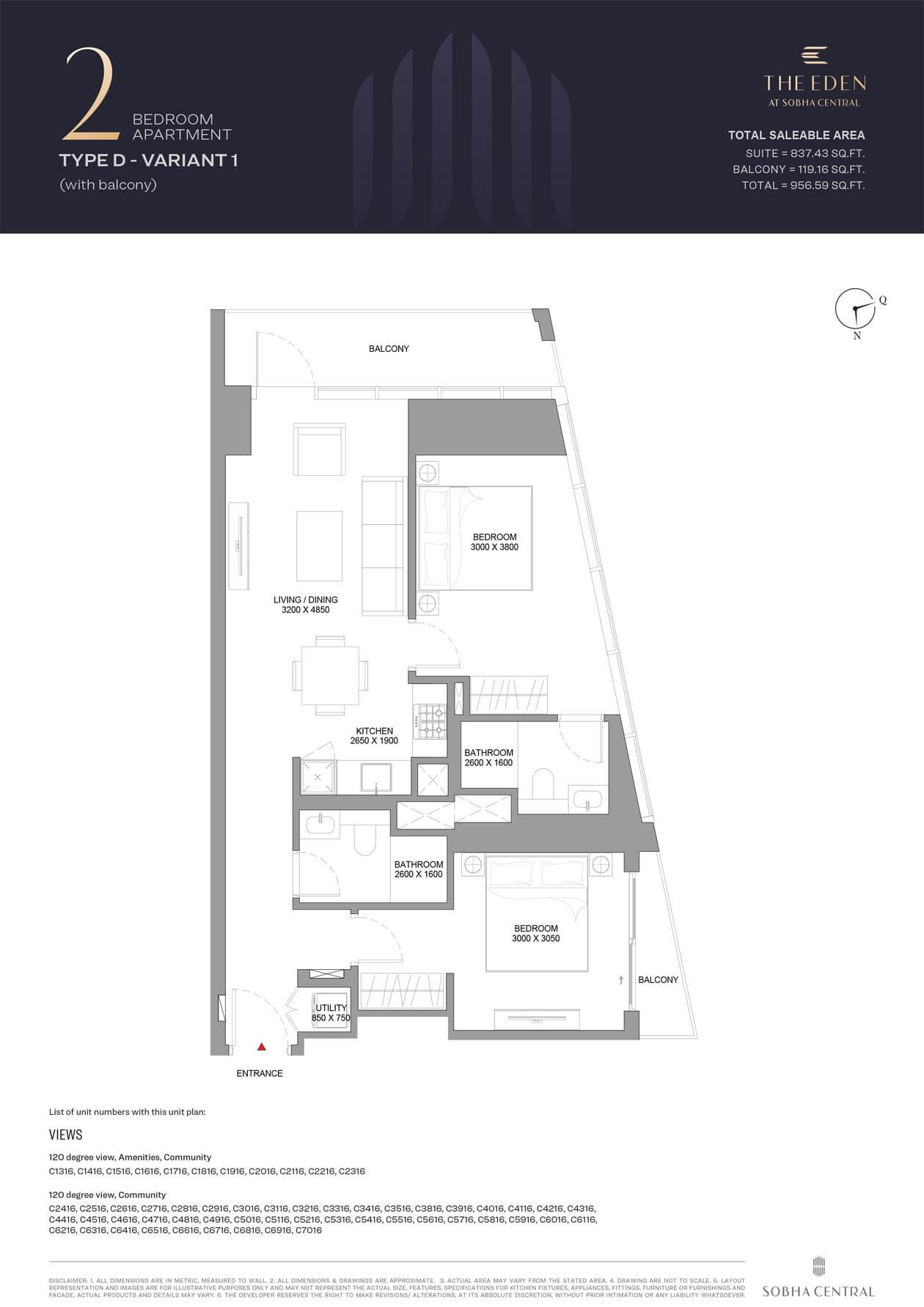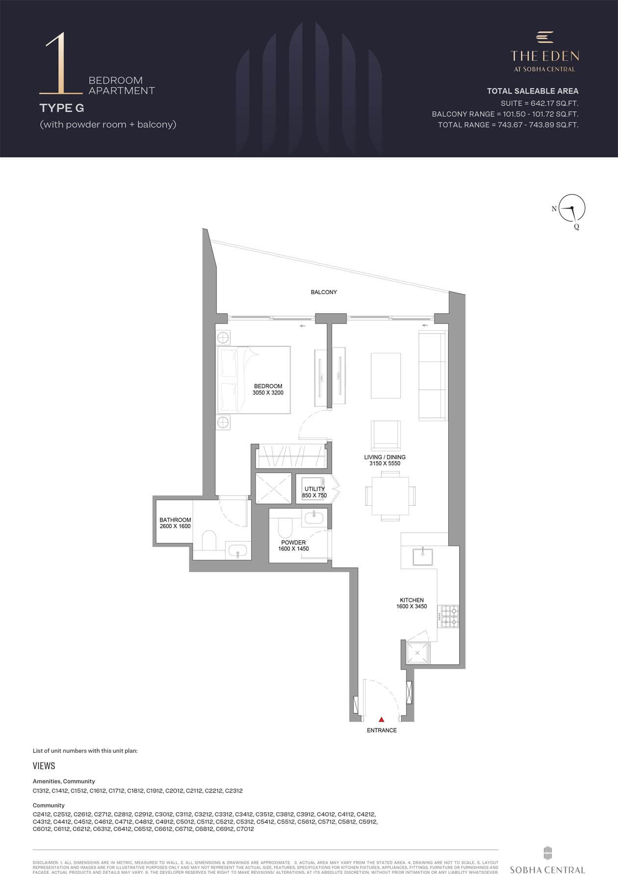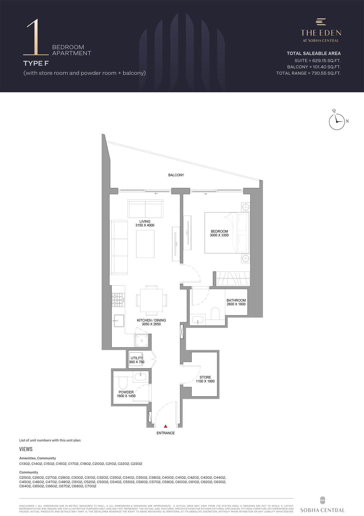 The Eden at Sobha Central consists of 1 and 2-bedroom luxury apartment units with exclusively crafted floor plans. Unit type is different, and some room plans have pounders, hot-water supply rooms, or storages to be more practical. Each apartment boasts generous living spaces, modern kitchens, stylish rooms and large balconies, with breathtaking views of Dubai, Emirates Hill or of the Arabian Gulf.