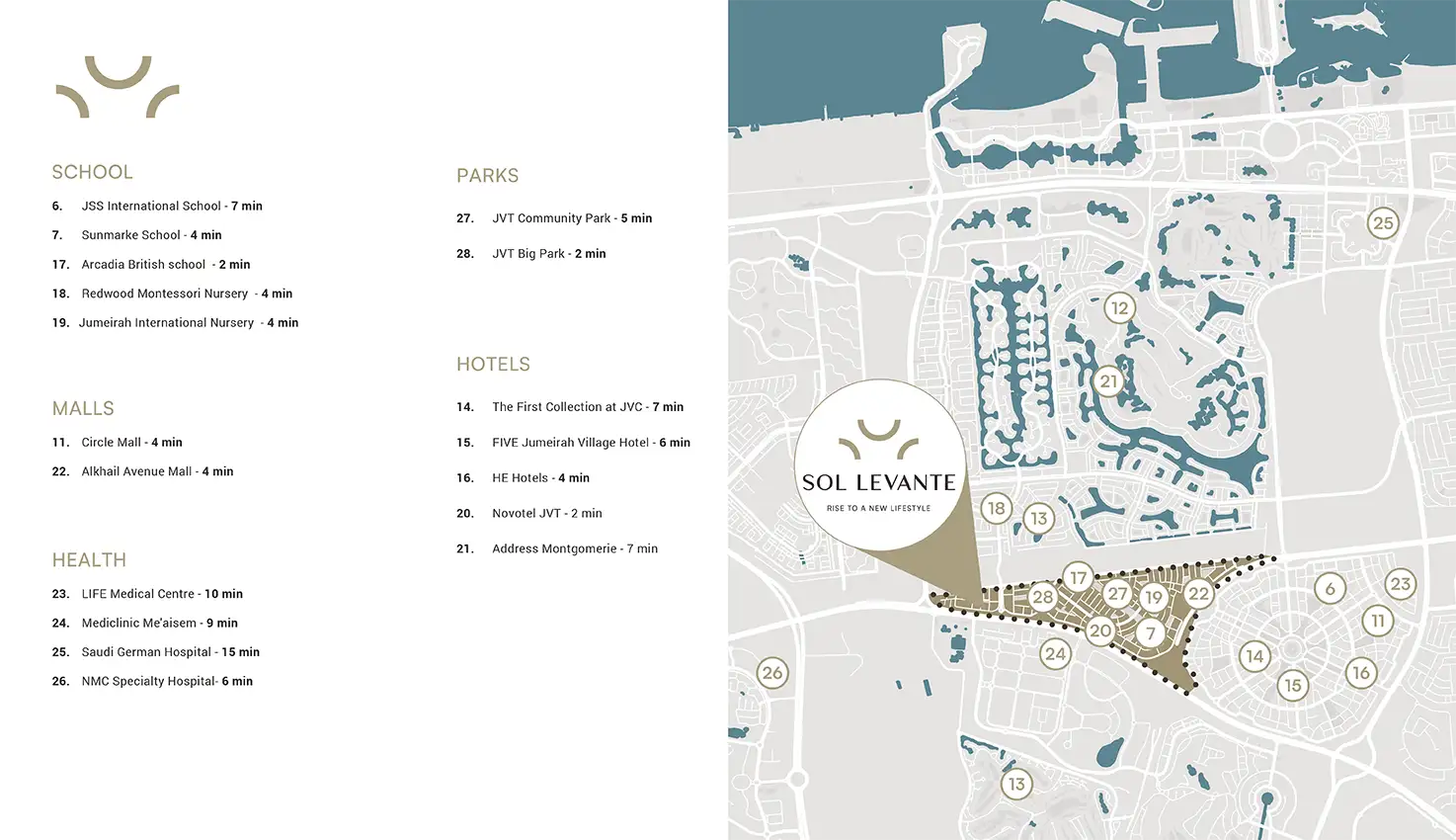 The master plan of Sol Levante is crafted Sol Properties to offer world class residential apartment at Jumeirah Village Triangle. The design of development integrates luxury and natural elements for offering modern living experience while architectural layout enhances comfort. The architect of property includes aesthetic designs, open plan layout and floor to ceiling windows that maximizes natural light and ventilation in each unit with the scenic view of JVT. It has all the premium amenities such as swimming pool, spa, changing room, sun lounges, a modern gym, Kids play area, yoga deck and multipurpose lounges.