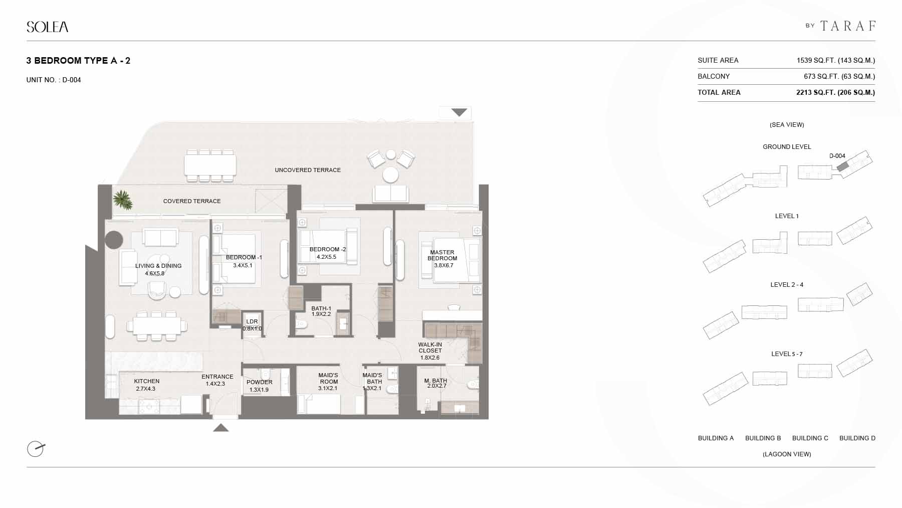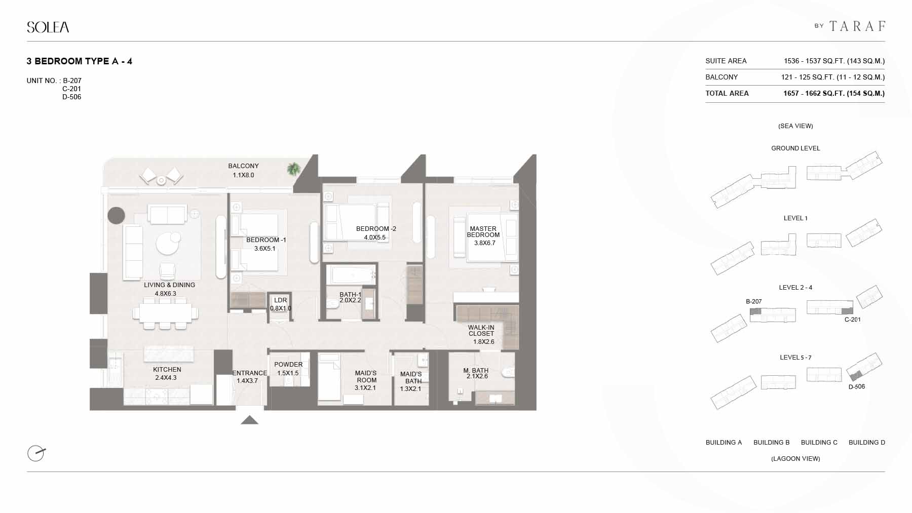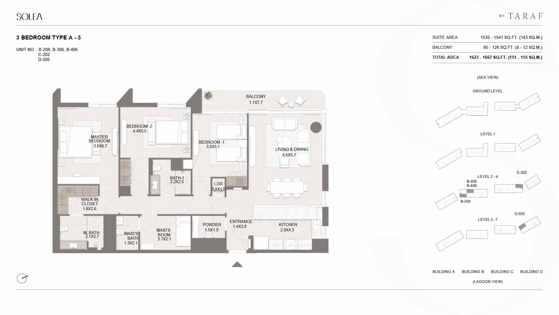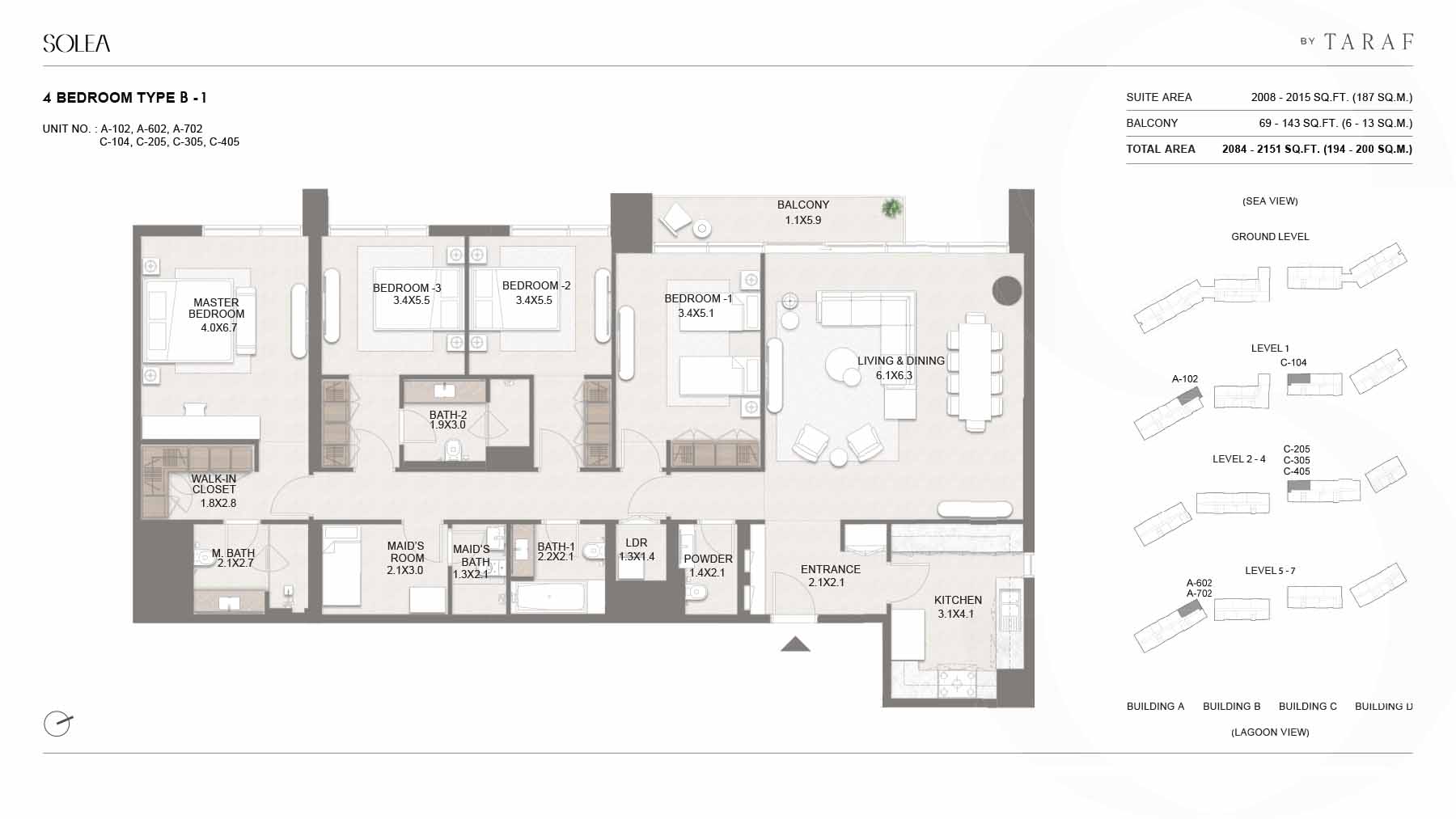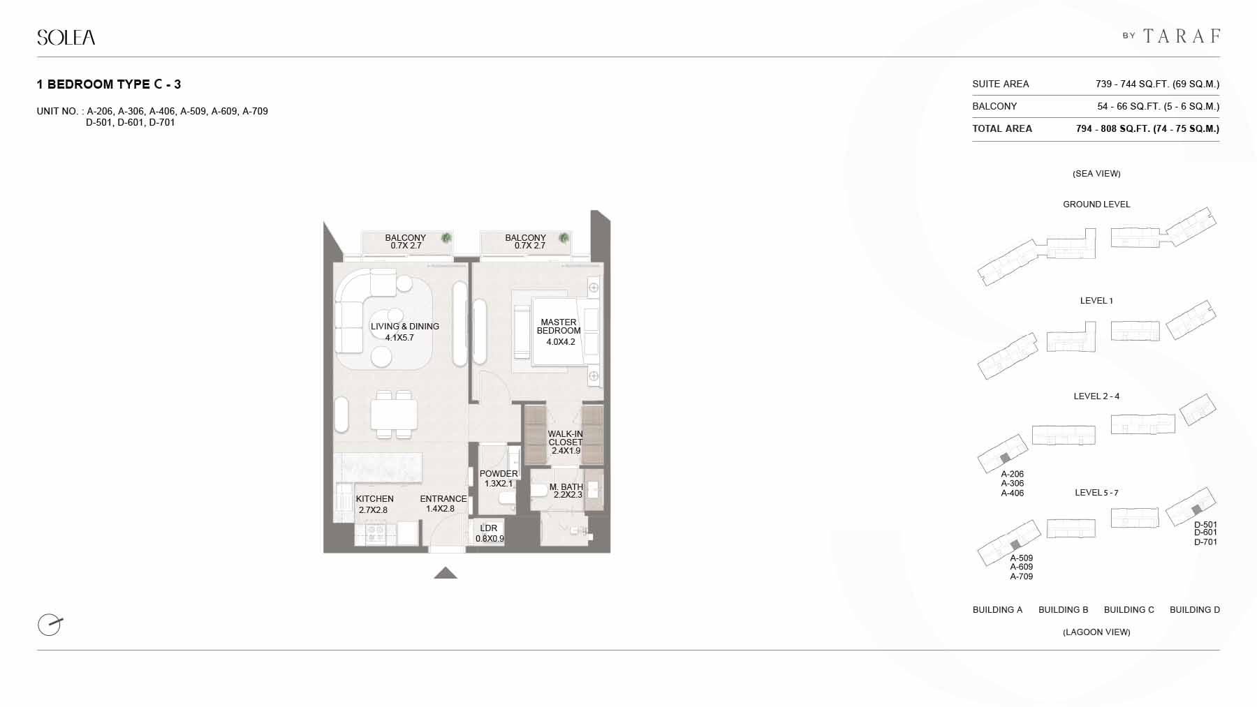 Solea Residences offers a selection of 1 & 4-bedroom apartments, seamlessly integrated into its floor plans in Al Saadiyat Island. It is helpful to cater to the diverse needs of modern homeowners. Each home is designed with expansive interiors, seamlessly blending open-concept living areas with generous outdoor spaces and large windows that invite natural light and breathtaking landscape views. Designed for both comfort and efficiency, each unit features inviting interiors that encourage relaxation, complemented by high-end appliances that enhance a seamless, modern lifestyle.