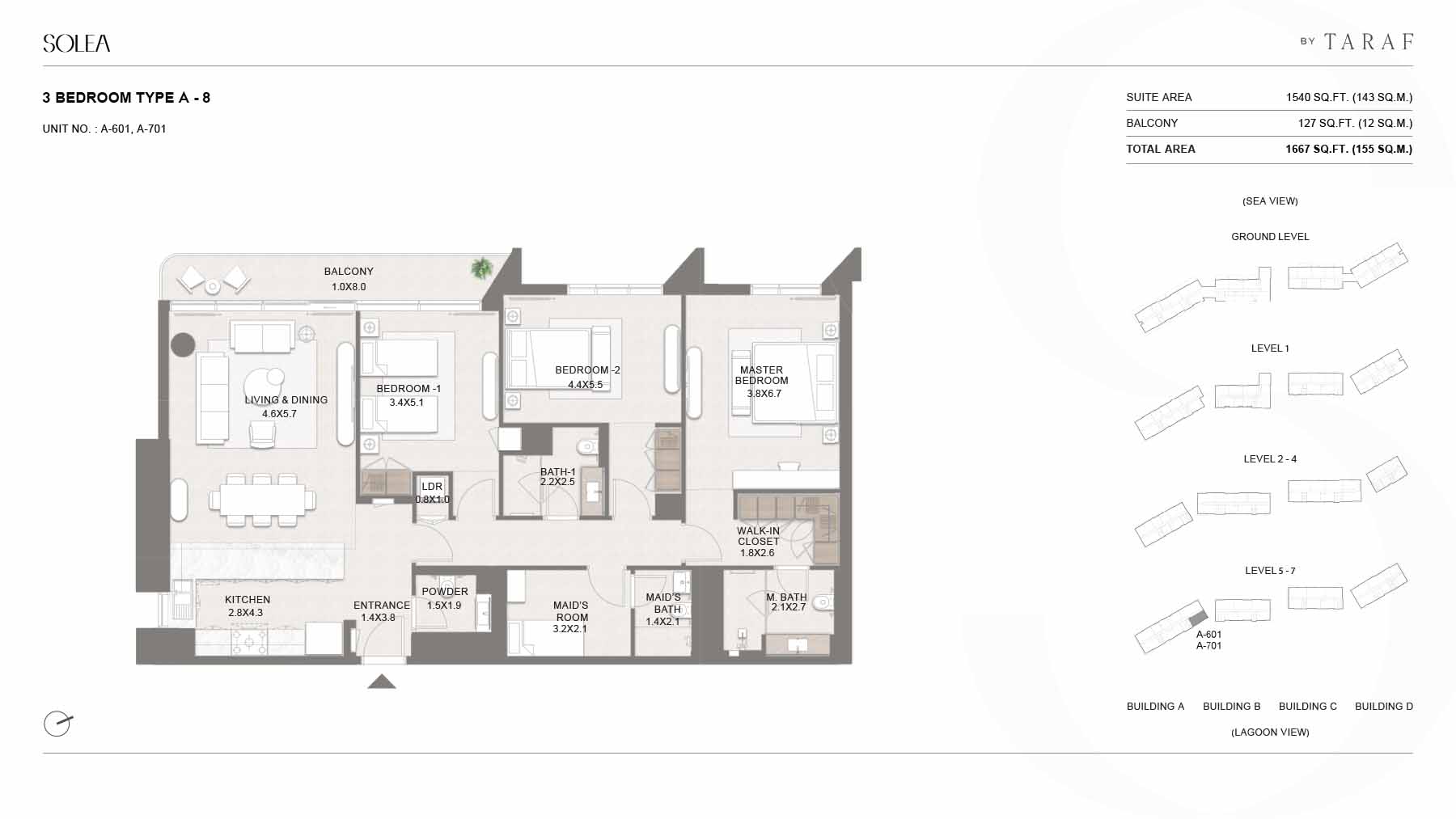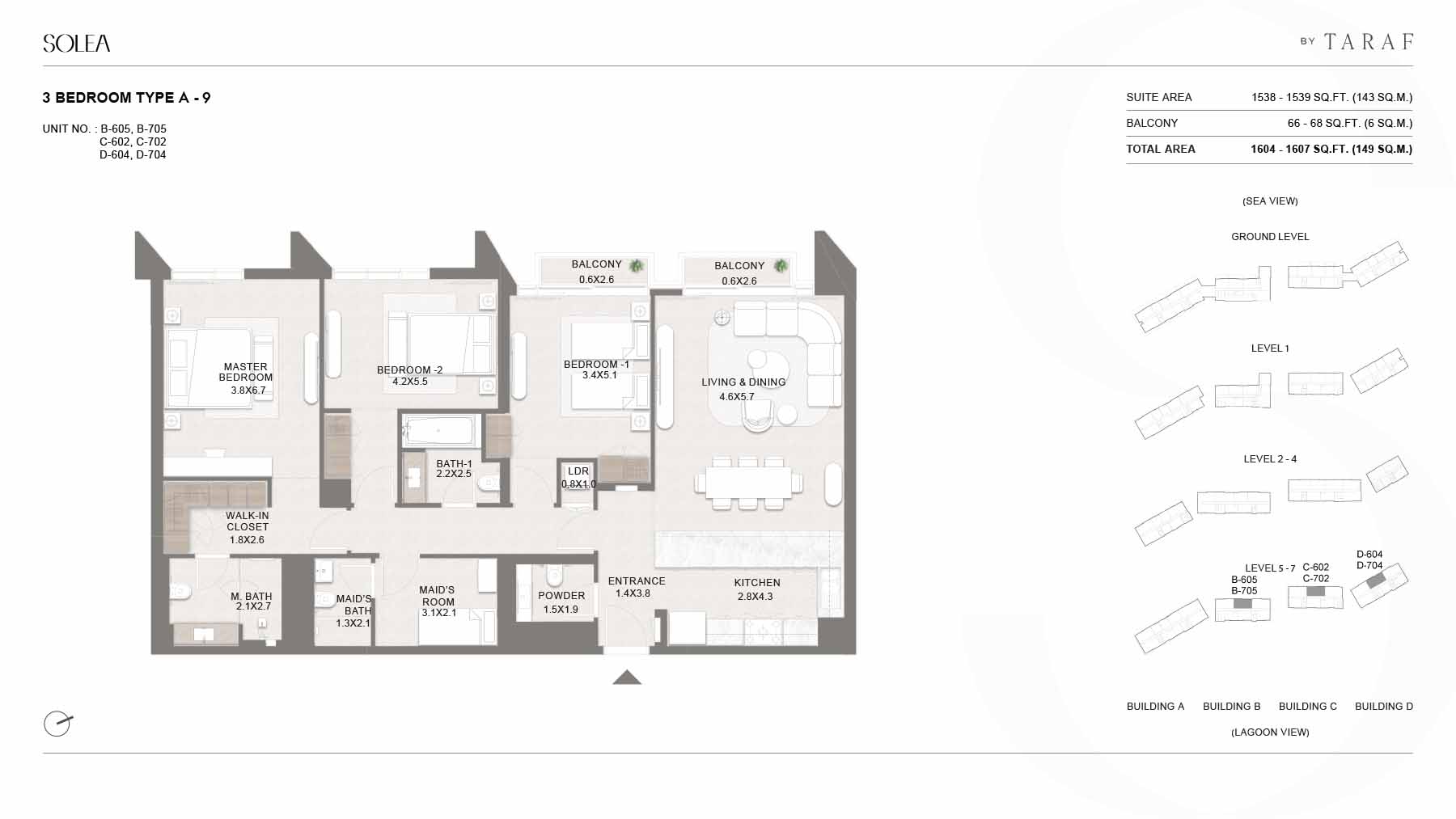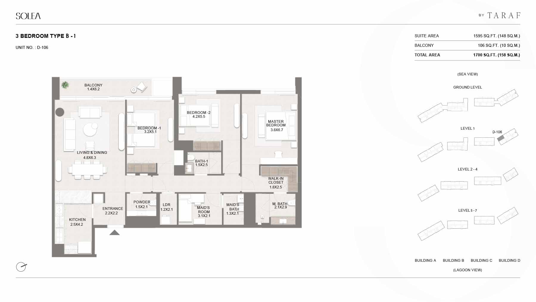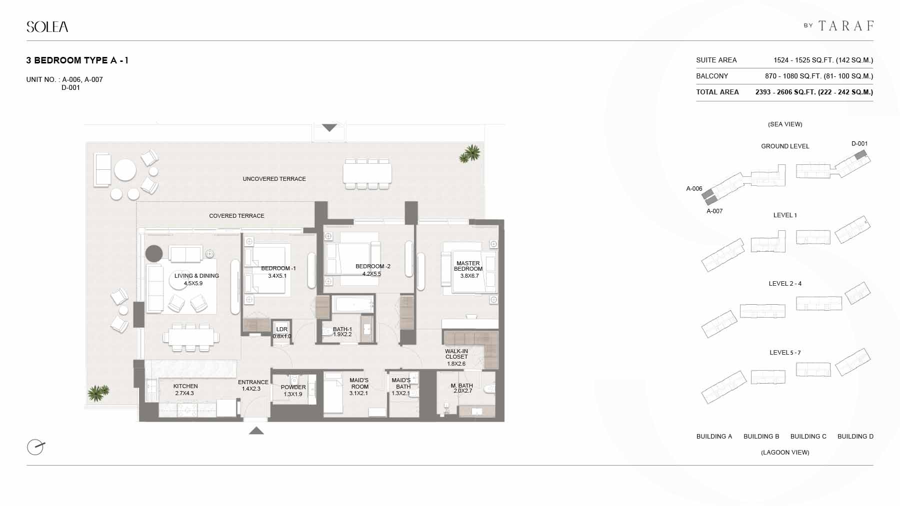 Solea Residences offers a selection of 1 & 4-bedroom apartments, seamlessly integrated into its floor plans in Al Saadiyat Island. It is helpful to cater to the diverse needs of modern homeowners. Each home is designed with expansive interiors, seamlessly blending open-concept living areas with generous outdoor spaces and large windows that invite natural light and breathtaking landscape views. Designed for both comfort and efficiency, each unit features inviting interiors that encourage relaxation, complemented by high-end appliances that enhance a seamless, modern lifestyle.