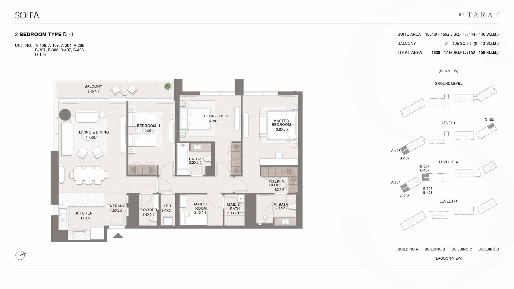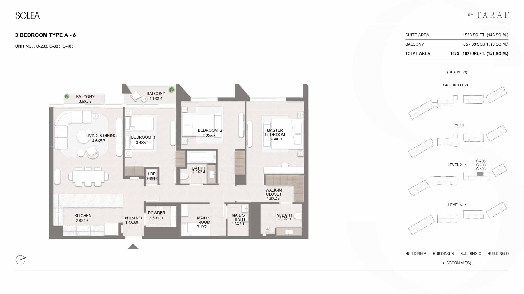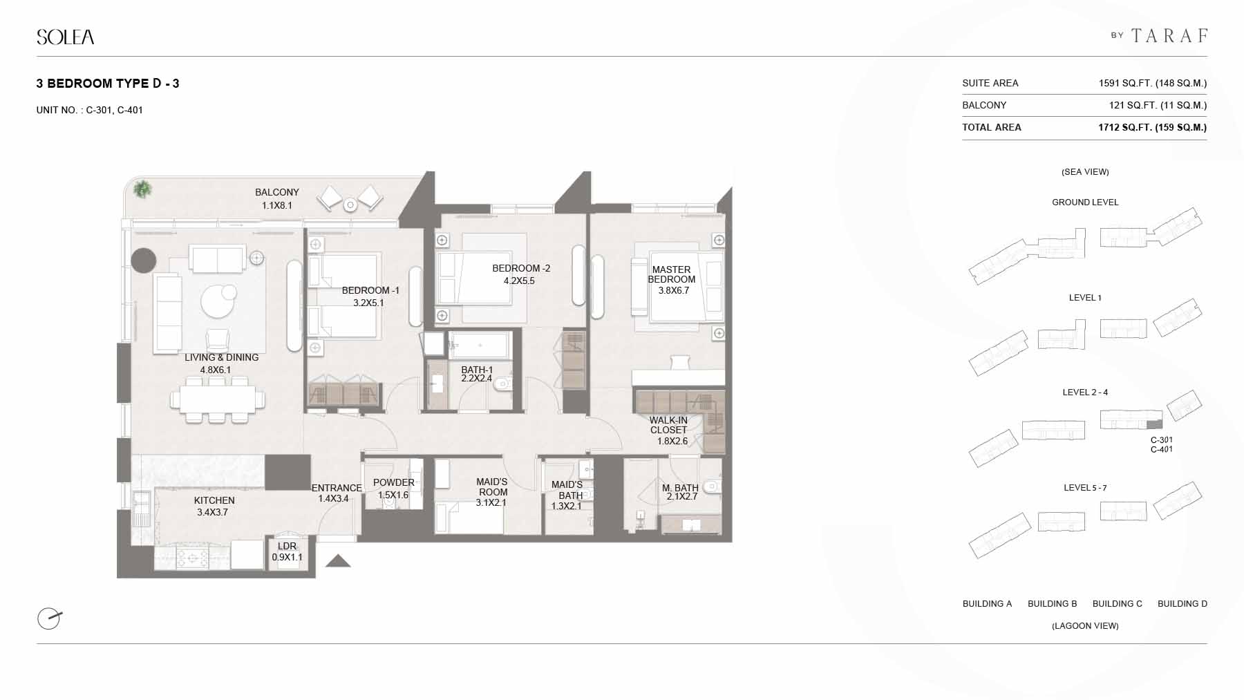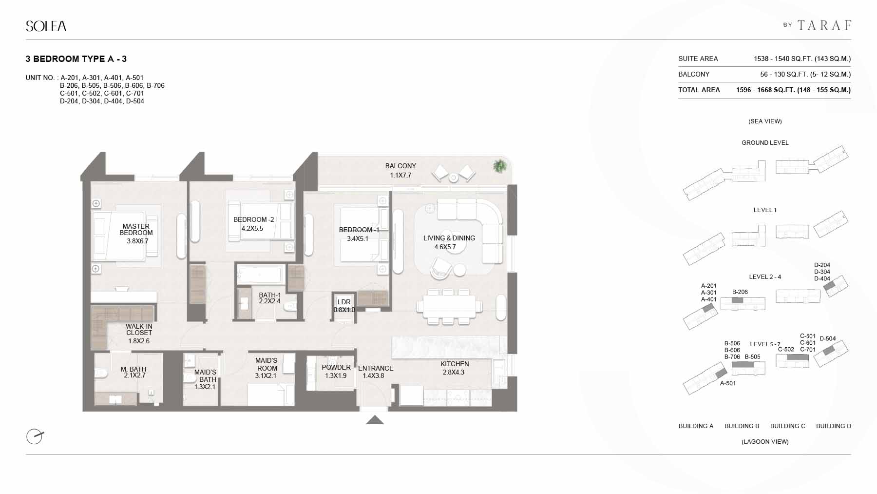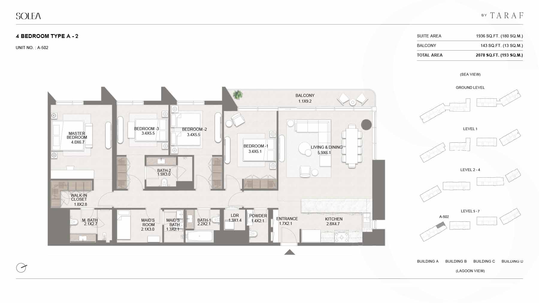 Solea Residences offers a selection of 1 & 4-bedroom apartments, seamlessly integrated into its floor plans in Al Saadiyat Island. It is helpful to cater to the diverse needs of modern homeowners. Each home is designed with expansive interiors, seamlessly blending open-concept living areas with generous outdoor spaces and large windows that invite natural light and breathtaking landscape views. Designed for both comfort and efficiency, each unit features inviting interiors that encourage relaxation, complemented by high-end appliances that enhance a seamless, modern lifestyle.