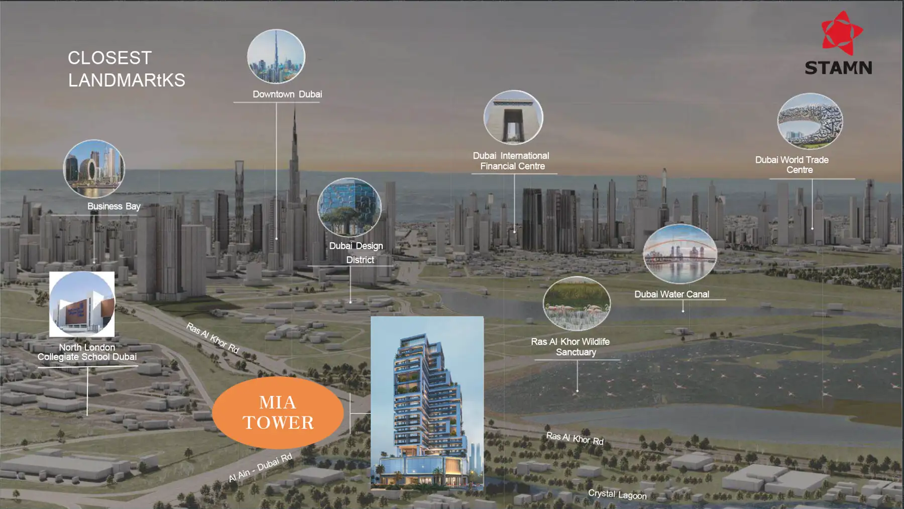 The master plan of Stamn Mia Tower is being master planned by Stamn Real Estate Developer, surrounded by great, green and urban locality. The whole community is designed and being offered by lots of roadways and pathways through green and peaceful surroundings that is suitable for perfect for a serene lifestyle. The society is well planned with seating areas surrounded by lush greenery and relaxation zones. There are various amenities with exciting features that makes living very luxurious. One can enjoy the crystal-clear view of lagoon and the fresh air of Ras Al Khor Sanctuary. All the basic things needed like schools, hospitals, supermarket, dining spots all are just a minute away. Amenities like Club lounge, cinema room, gym area, wet kids play area, dry kids play area, yoga studio, private family pool and many more are arranged and designed with well planning.