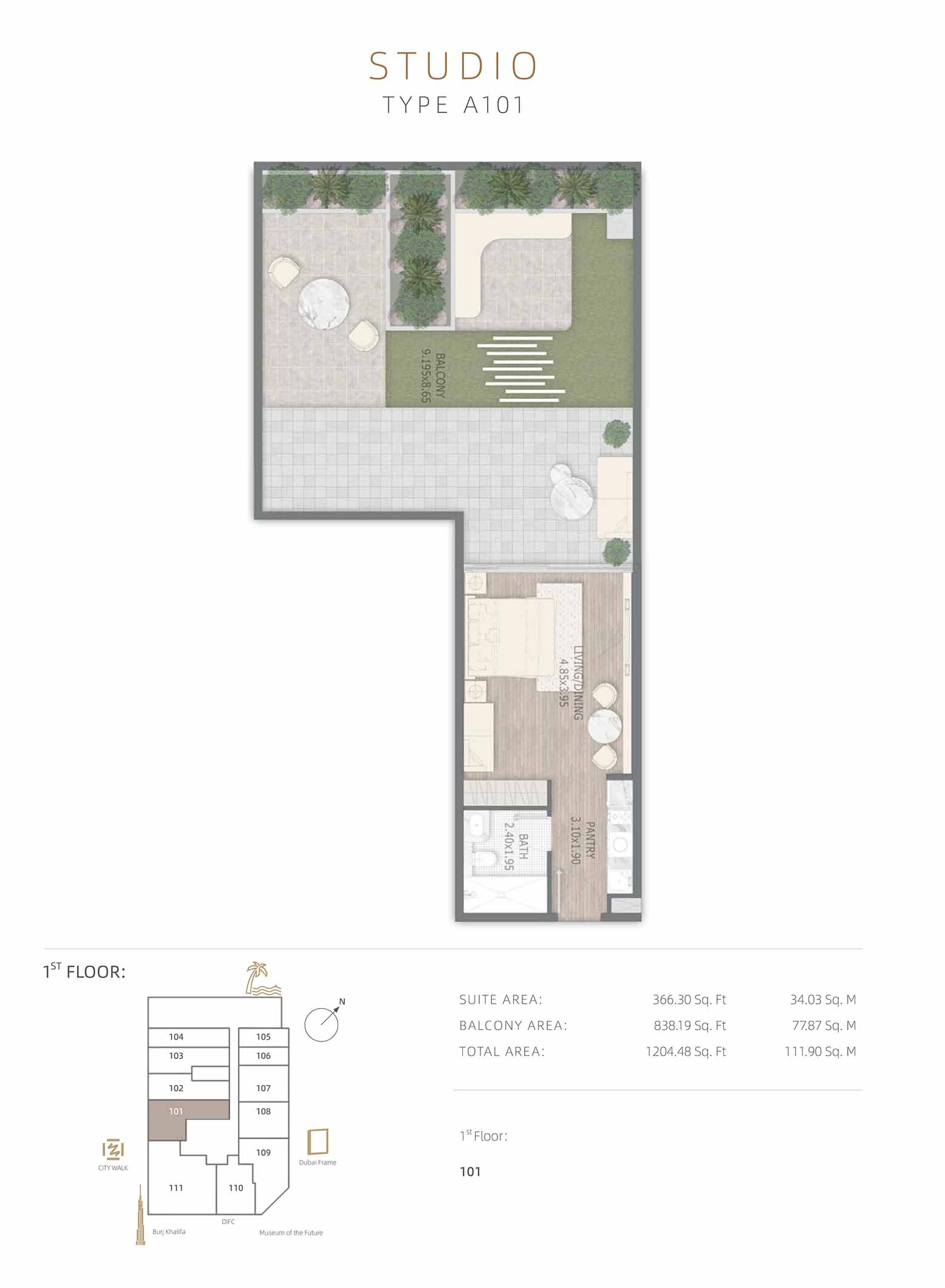 Stamn One Residences situated in Jumeirah Garden City presents a distinctive selection of carefully crafted apartments, including studios, 1 & 2-bedroom units. Each apartment is designed for ultimate comfort, featuring open living and dining areas ideal for relaxation or social gatherings, complemented by sophisticated finishes and modern aesthetics. The bathrooms provide a spa-like experience, crafted with modern fittings and elegant designs.