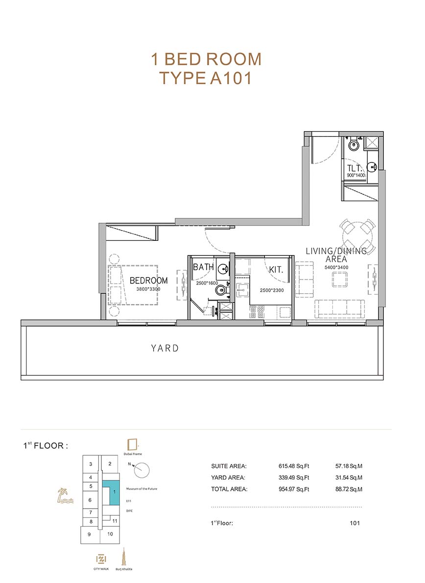 Stamn Yuni is having customized floor plans with a range of exclusive studios and 1-bedroom apartments in the high-rise tower at Jumeirah Garden City. Each unit is loaded with modern features and built with premium fittings, designer interiors along with smart home technology. Every residence is developed with open plan concept, where larger rooms, open living and dining area, modern kitchen and spacious balconies offering scenic view of sea and surrounding area.