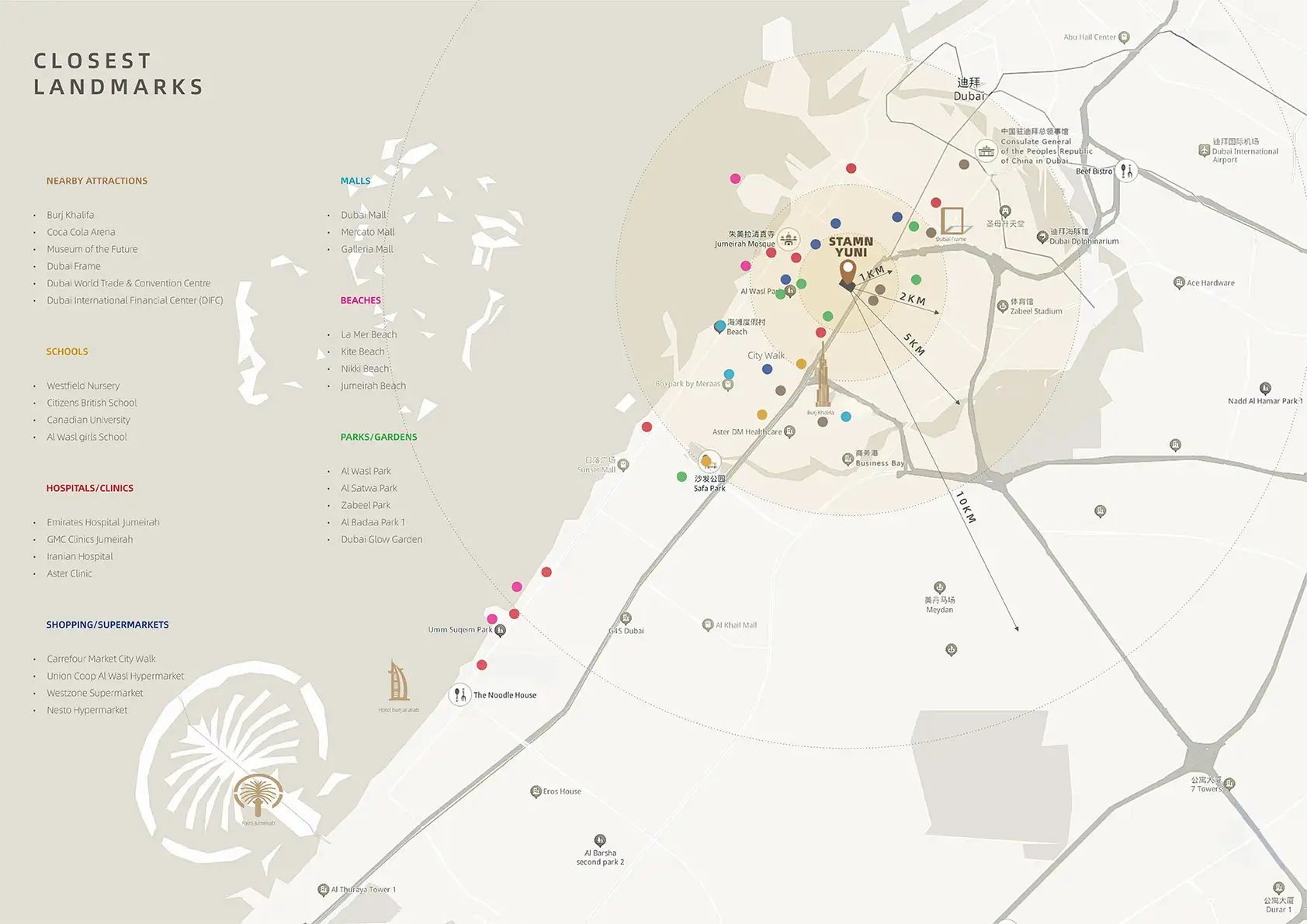 Stamn Yuni is located at Jumeirah Garden City within Al Satwa area, that is rich in cultural attractions, including art galleries, museums, and cultural centers. The community is situated behind Sheikh Zayed Road, that offers convenient access to iconic destinations of Dubai such as DIFC, Business Bay, Dubai Mall, Burj Khalifa and Jumeirah Beach. This area is developed with a lot of gardens, parks to create a natural environment along with eco-friendly features. The master plan of this garden city is having a number of commercial and residential spaces, shopping malls, retail shops, restaurants, hotels. The locality is connected with all the major areas of Dubai with a network of public transport systems.