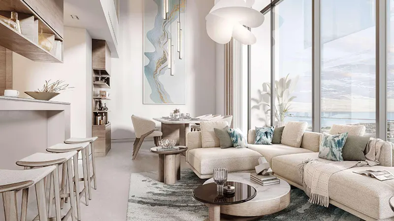 Starline Beach Residences at Siniya Island, Umm Al Quwain by Sobha Group Luxury 1-3-bedroom apartments and immaculate duplexes. With stunning sea views of the Arabian Sea in a peaceful Island setting. is a coastal getaway that is home to an exceptional collection of Officers An exclusive beachfront residential resort, the development combines strikingly iconic architecture with a strong connection to nature and community timeless design for inspired living. The development itself is also a work of architectural art, and harmoniously combines cosmopolitan sophistication with the stunning natural beauty that surrounds it.