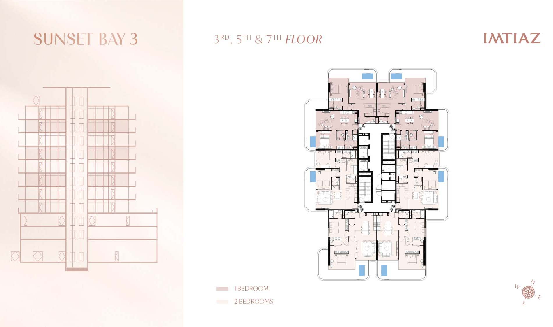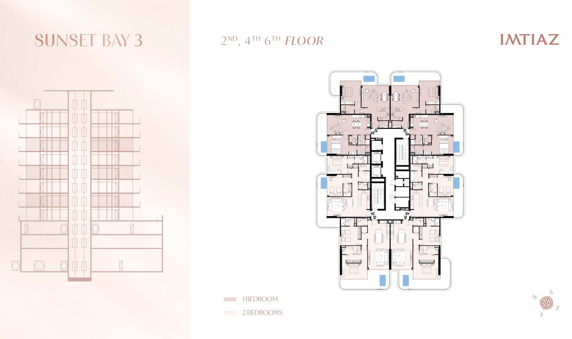 Sunset Bay 3 by Imtiaz Developments has perfectly designed floor plans in 1, 2 and 3-bedroom residences that offers more space, comfort, and leisure. It offers compact yet spacious living area with well-planned interiors and expansive layouts offering breathtaking views of island and ocean. Each unit is having modern kitchens equipped with automatic appliances, smart home features and use of best quality materials makes it top quality finishes. The open-plan designs and floor to ceiling glass windows ensures that apartment is having ample natural light and ventilation in each corner. The rooftop pool with views of the Arabian Gulf is designed to offer a feel of luxury combined with leisure. The builder has offered fully furnished and fitted apartment to allow homebuyers to enjoy the grand aesthetics that shall enhance the overall living experience.